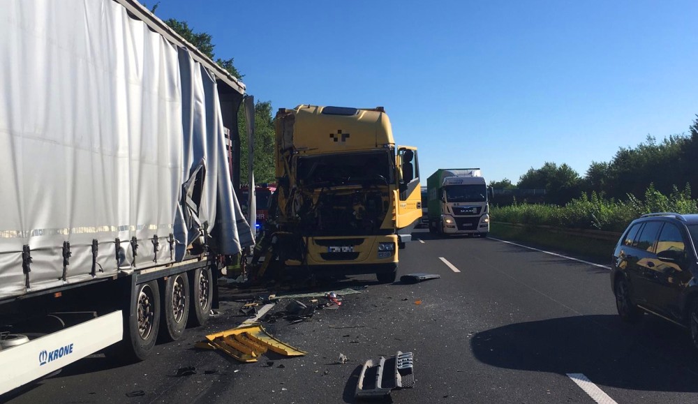 Deshalb bemerkte er zu spät, dass sich der Verkehr zurückgestaut hatte. Als er den Rückstau bemerkte, lenkt er noch geistesgegenwärtig nach links, konnte aber nicht mehr verhindern, dass er mit seiner rechten Fahrzeugfront gegen das linke hintere Heck des Sattelaufliegers stieß. Gegen 12.30 Uhr waren wieder alle Fahrstreifen in Fahrtrichtung Kassel frei. Der Sachschaden wird auf 80.000 Euro geschätzt.