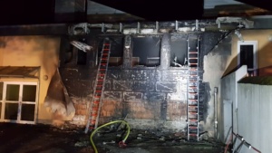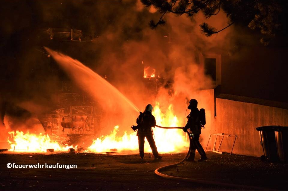 Kaufungen – In der Nacht von Donnerstag auf Freitag kam es in Kaufungen zu zwei Bränden. Kurz vor Mitternacht wurde die Feuerwehr zu einem Mülltonnenbrand zur Gesamtschule Kaufungen (IGS) alarmiert. Benjamin Tornow Einsatzleiter der Feuerwehr war auf Grund der Alarmierung unterwegs zum Feuerwehrstützpunkt. Hierbei musste er auch an der eigentlichen Einsatzstelle vorbeifahren. Schnell erkannte er, dass der Mülltonnenbrand bereits auf das Schulgebäude übergegriffen hatte.