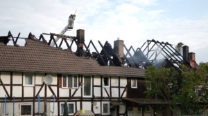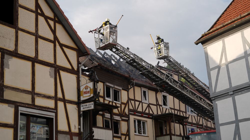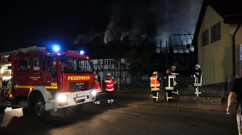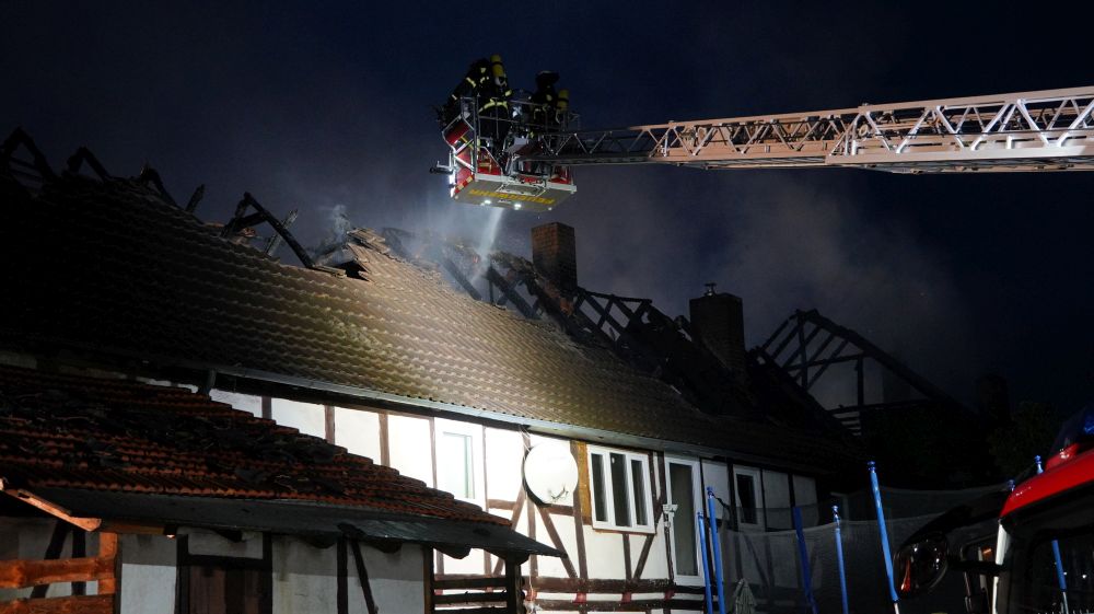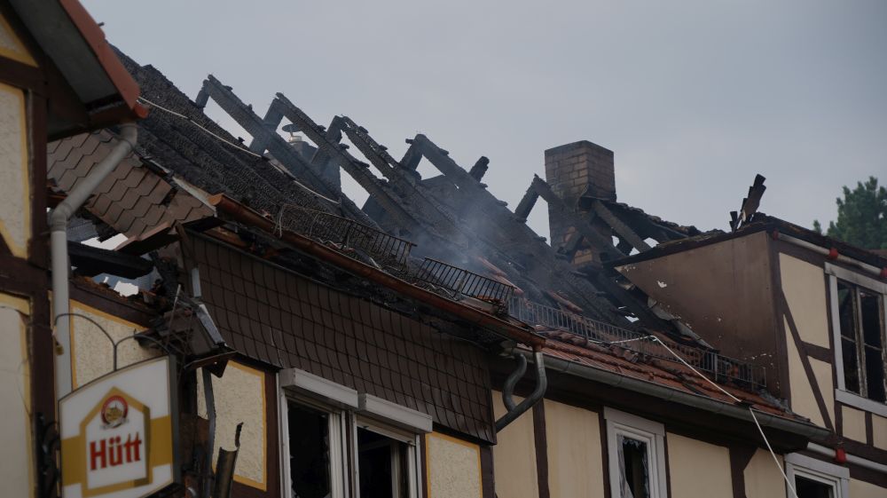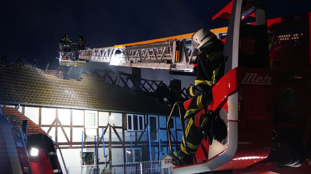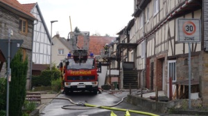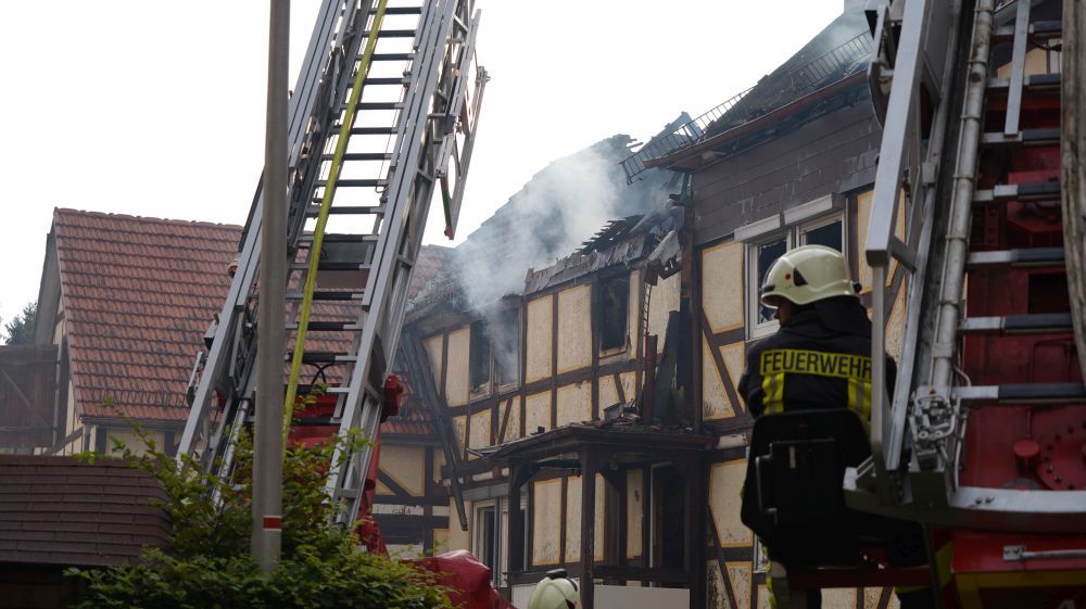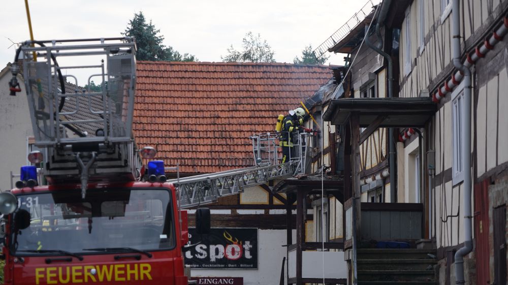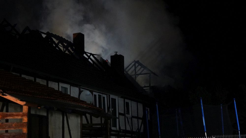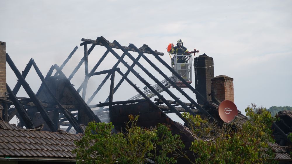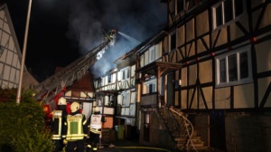Ein direkt angrenzendes Wohnhaus, ebenfalls ein altes Fachwerkhaus, wurde durch das Feuer im Dachgeschoss und ersten Geschoss stark beschädigt. Die Bewohner aus diesem Haus, eine vierköpfige Familie, konnte das Haus aber unverletzt verlassen. Aktuell sind die Einsatzkräfte der Feuerwehr noch mit Löscharbeiten beschäftigt. Eine Begehung der Gebäude ist bisher nicht möglich. Die Ortsdurchfahrt von Eiterhagen, die Quenteler Straße, ist weiterhin gesperrt.
