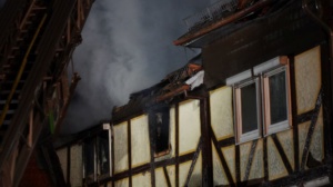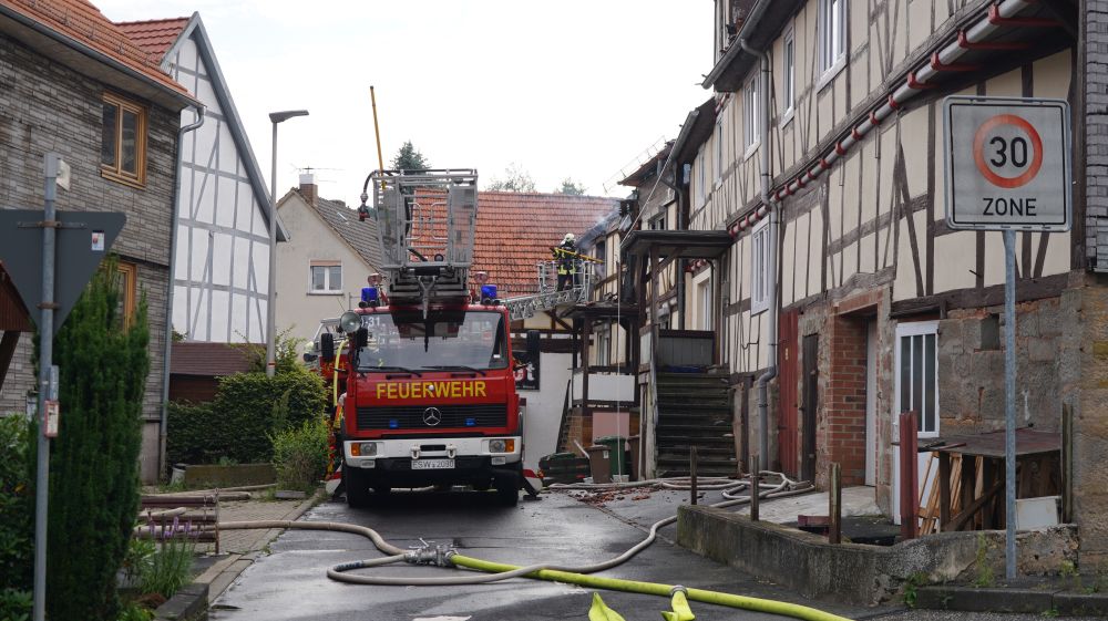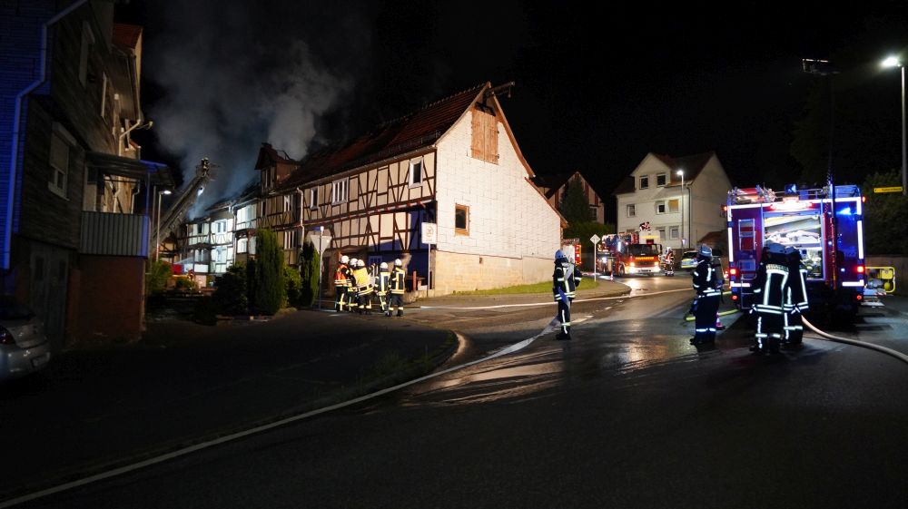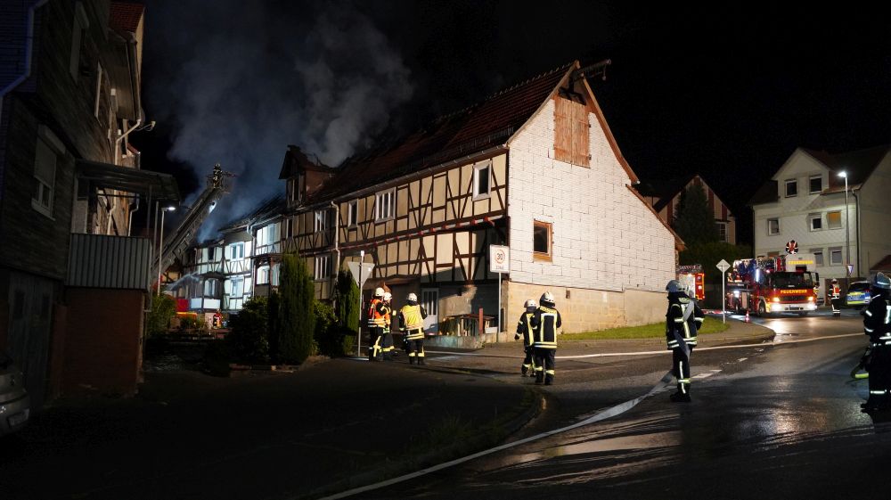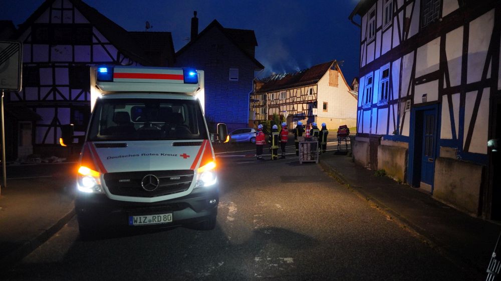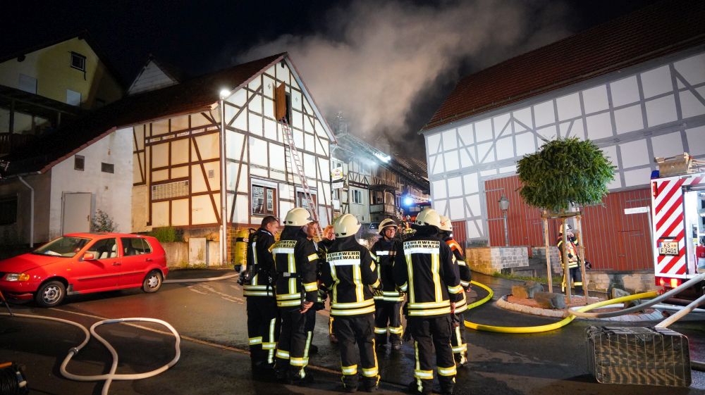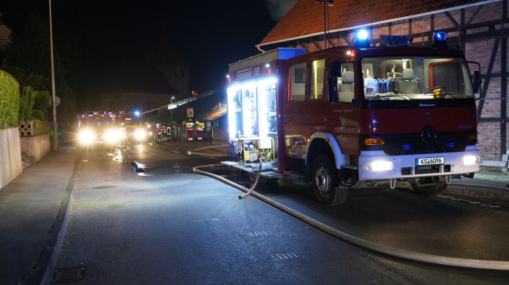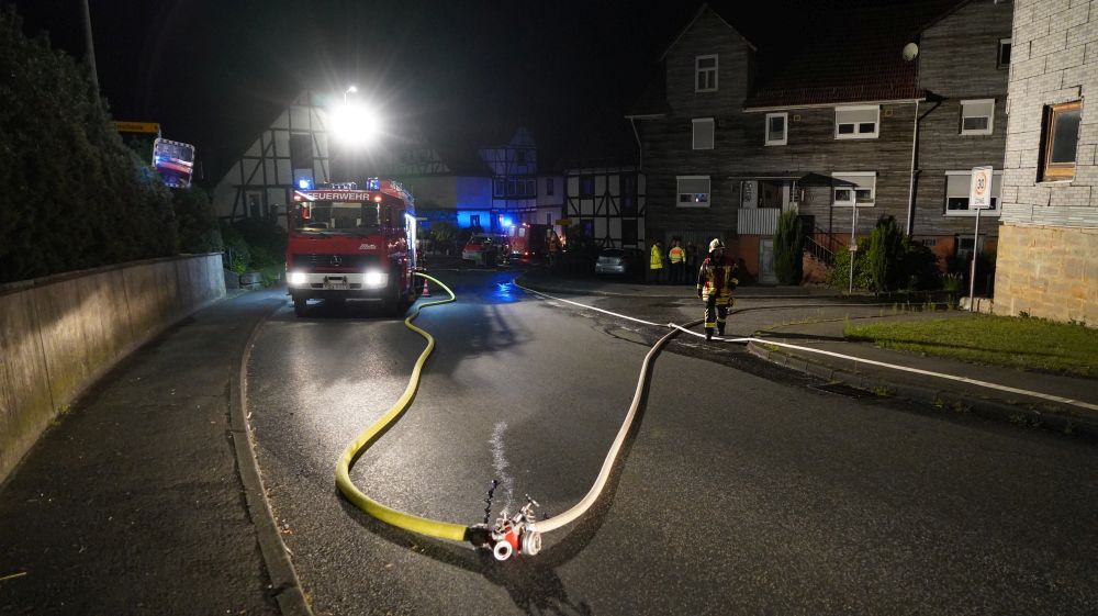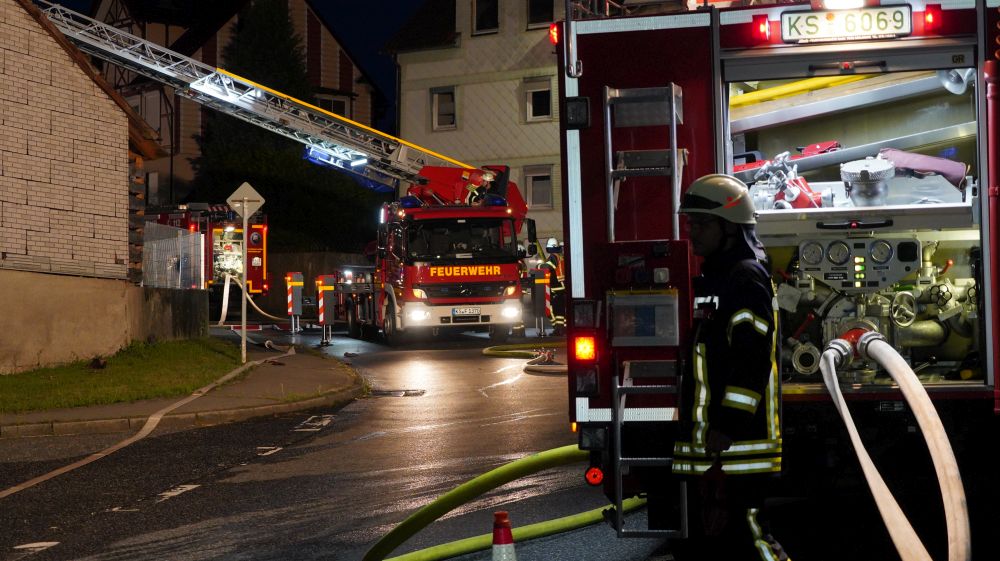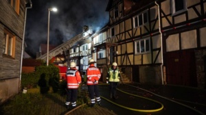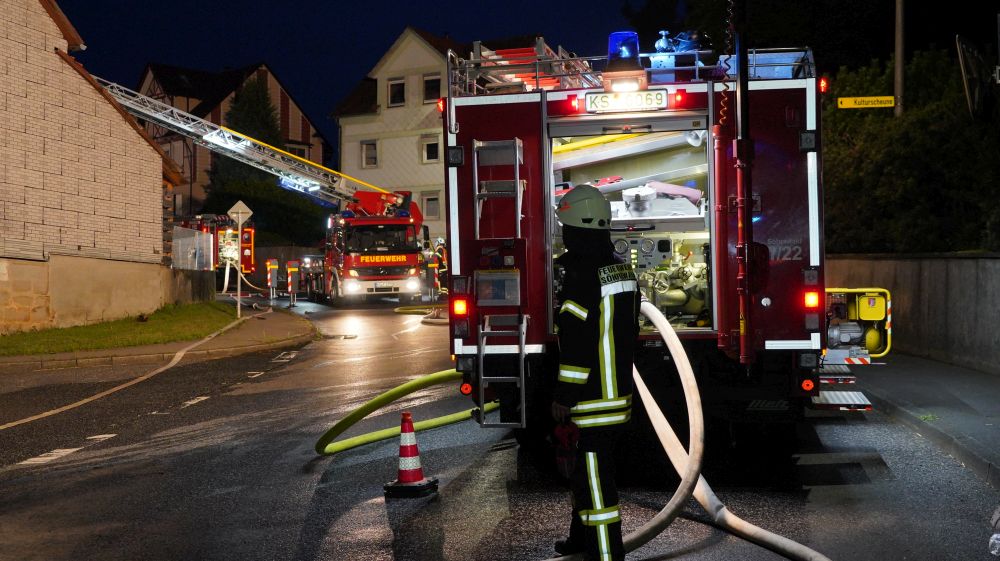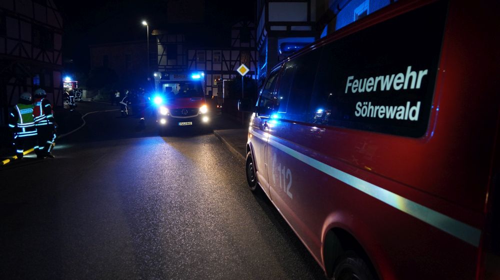 Söhrewald – Am Montag kam es gegen 03.30 Uhr zu einem Brand in Söhrewald-Eiterhagen in der Mühlengasse. Beim Eintreffen der Einsatzkräfte stand ein Wohnhaus bereits im Vollbrand. Ein 28-jähriger Bewohner konnte sich noch zusammen mit seiner 22-jährigen Freundin rechtzeitig aus dem brennenden Gebäude retten. Seine ebenfalls in dem Haus wohnende 68-jährige Mutter wird allerdings noch vermisst. Der 28-Jährige und die 22-Jährige erlitten eine leichte Rauchgasvergiften und wurden zur weiteren Behandlung in ein Kasseler Krankenhaus eingeliefert.