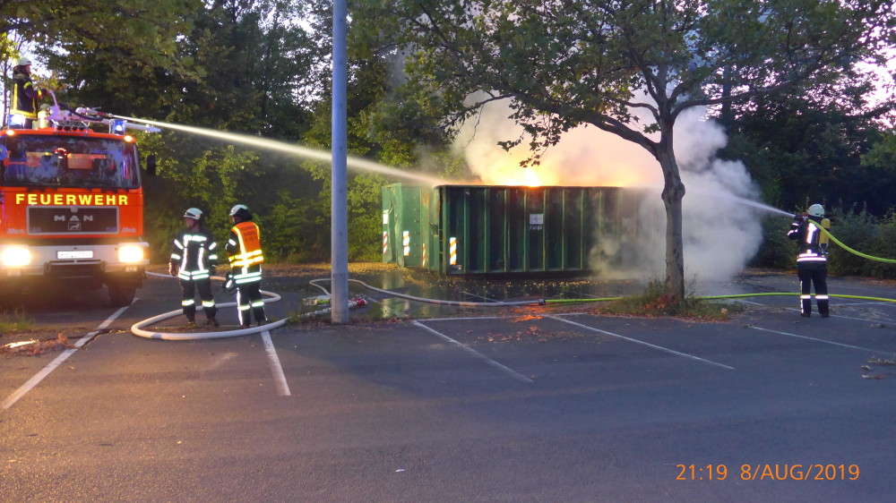 Kassel – Aufgrund einer starken Rauchentwicklung wurde die Feuerwehr am Donnerstag gegen 21.00 Uhr in die Korbacher Straße alarmiert. Nach der Erkundung des in der Luft befindlichen Rettungshubschraubers Chritoph 7 konnte die Brandstelle bereits auf einen Container im Bereich der Georg-Christoph-Lichtenbergschule in der Brückenhofstraße eingegrenzt werden. Die Kräfte der Feuerwehr fanden an der Einsatzstelle auf dem Parkplatz der Georg-Christoph-Lichtenbergschule einen 40qm fassenden Abrollcontainer im Vollbrand vor.