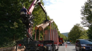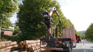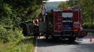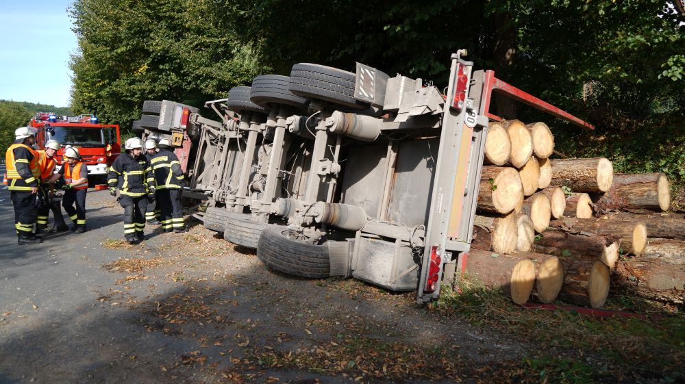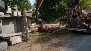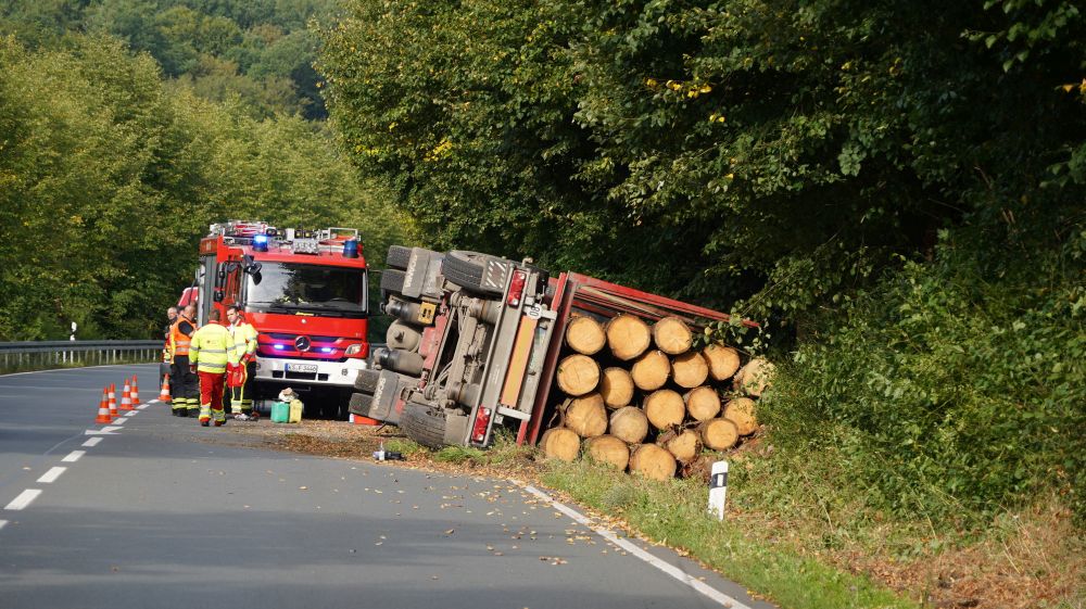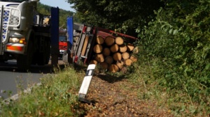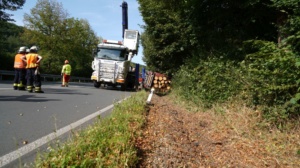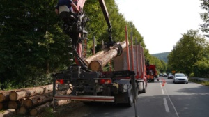 Fuldatal – Am frühen Dienstagmorgen gegen 7.50 Uhr kam es auf der B3 zwischen den Ortsteilen Wahnhausen und Simmershausen zum Unfall mit einem LKW. Der Fahrer des mit rund 30 Tonnen Holzstämmen beladenen Fahrzeuges kam nach ersten Informationen der Polizei aus bisher nicht bekannten Gründen in die Bankette und kippte zu Seite. Um den LKW nun bergen zu können, müssen zunächst die Baumstämme entladen werden, was sich auf Grund der LKW Lage als sehr schwierig erweist.