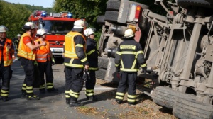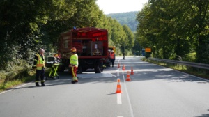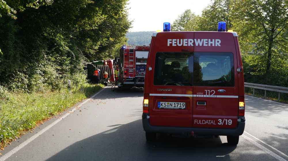 Das Unternehmen des verunglückten LKW übernimmt die Bergung selbst. Diese Arbeiten werden vermutlich eine Vollsperrung der B3 nach sich ziehen. Bei dem Unfall wurde der Fahrer nicht verletzt, er konnte sich selbst aus dem LKW befreien. Die Feuerwehr Fuldatal sicherte die Einsatzstelle ab, stellte den Brandschutz sicher und nahm auslaufende Betriebsstoffe auf. Die untere Wasserbehörde wurde ebenfalls zur Einsatzstelle gerufen.