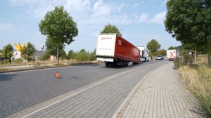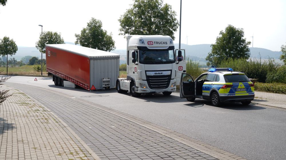 Wolfhagen – Am Donnerstagvormittag kam es zu einem Verkehrsunfall im Industriegebiet Niederelsungen. Ein Sattelzug war auf der Otto-Hahn-Straße in Fahrtrichtung SVG-Hof unterwegs. Aus noch unklaren Gründen löste sich der Anhänger in einer Rechtskurve vor einem Schnellrestaurant von der Zugmaschine. Der Fahrer konnte den Auflieger nicht mehr ohne Fremdhilfe aufrichten sodass ein Bergungskran zum Einsatz kam. Der Sachschaden am Auflieger schätzt die Polizei auf 15.000 Euro und an der Fahrbahn auf 5.000 Euro ein.