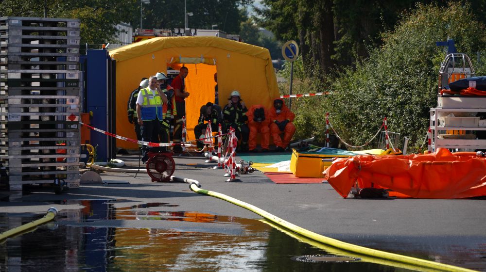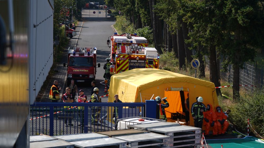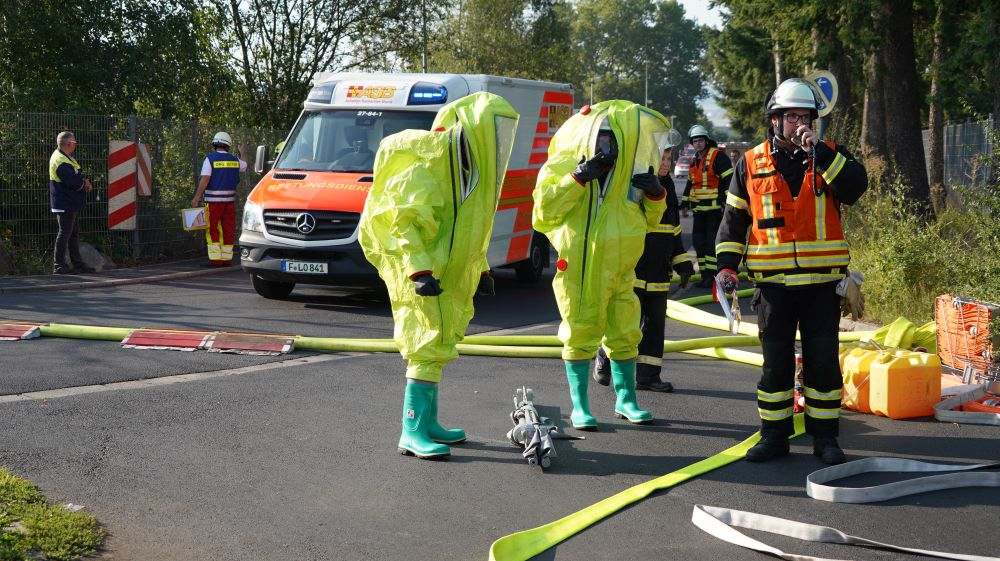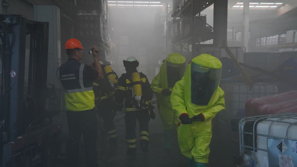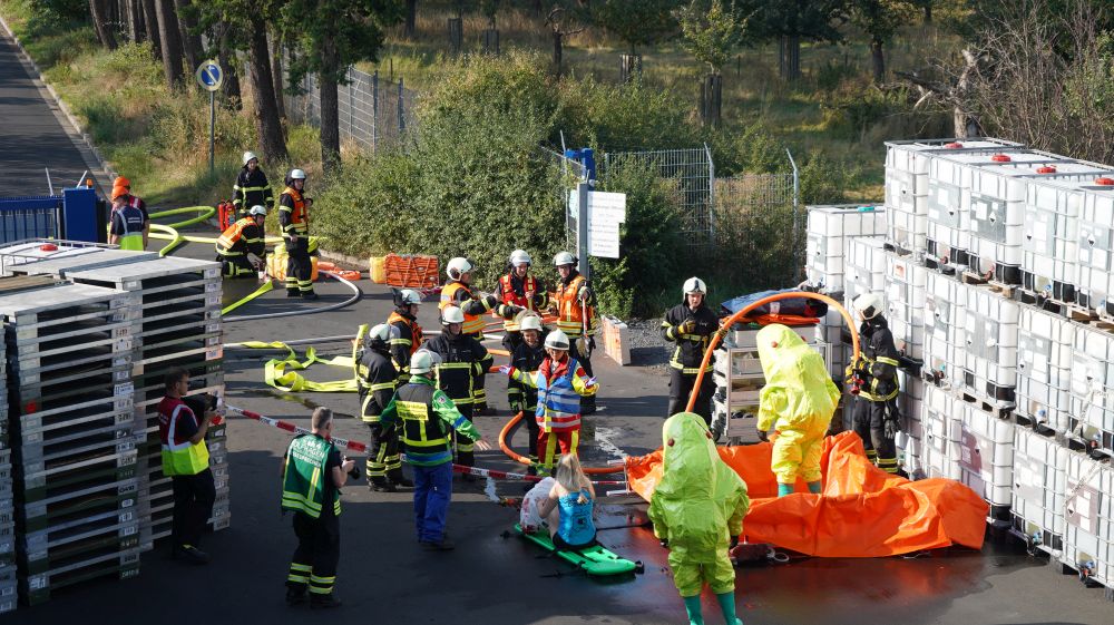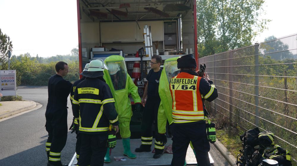 Lohfelden – Brenntag ist ein Chemiekonzern mit insgesamt 580 Standorten in der ganzen Welt, so auch hier in Kassel Lohfelden. Oberste Priorität hat die Sicherheit der Mitarbeiter und die Umwelt. Chemikalien zu lagern setzt hohe Erwartungen in Sicherheit und Technik. Die größte Sicherheitslücke in diesem System ist der Mensch. Um mit solchen möglichen Problemen klar zu kommen, stellt das Unternehmen Rettungs- und Einsatzkräften Teile des Unternehmens zur Verfügung, um Übungen durchführen zu können, wenn es doch einmal zum Unfall kommen sollte.