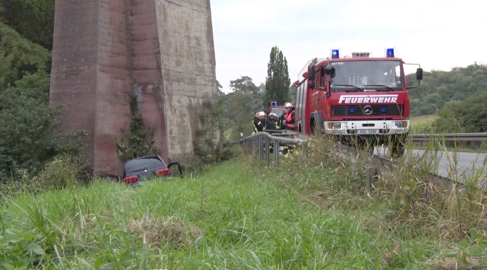Edertal – Zu einem schweren Alleinunfall kam es am Montagmorgen gegen 07.45 Uhr auf der B485 zwischen Buhlen und Lischensruh. Dabei wurde ein Person tödlich verletzt. Nach ersten Erkenntnissen von der Unfallstelle befuhr ein 59-jähriger Mann aus Waldeck die Bundesstraße von Buhlen kommend in Richtung Lischensruh, als er aus bislang ungeklärten Umständen nach links von der Fahrbahn abkam. Der Waldecker querte die Gegenfahrbahn, kam im Verlauf von der Straße ab, fuhr links an der Leitplanke vorbei und krachte frontal gegen einen Viaduktpfeiler der alten Bahntrasse.