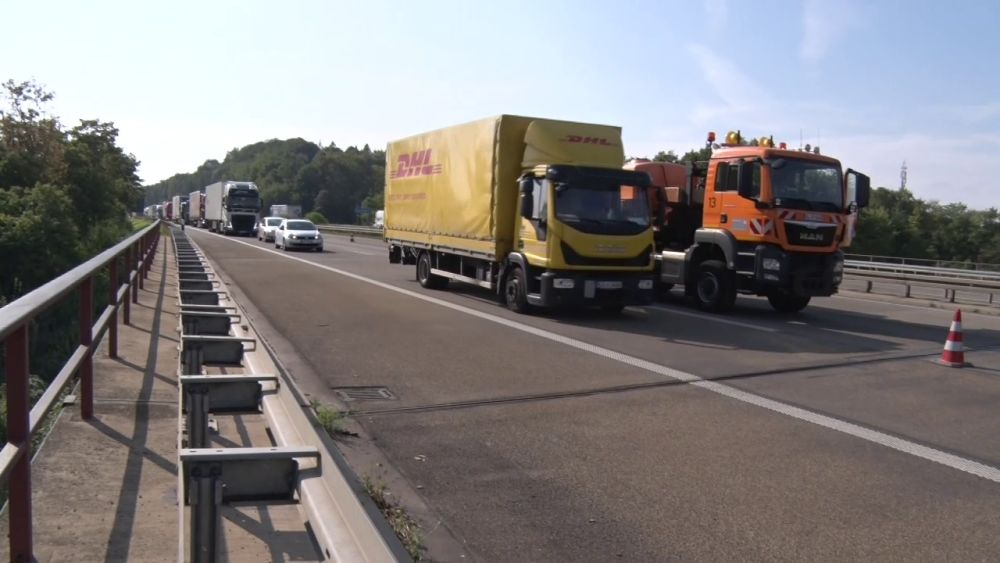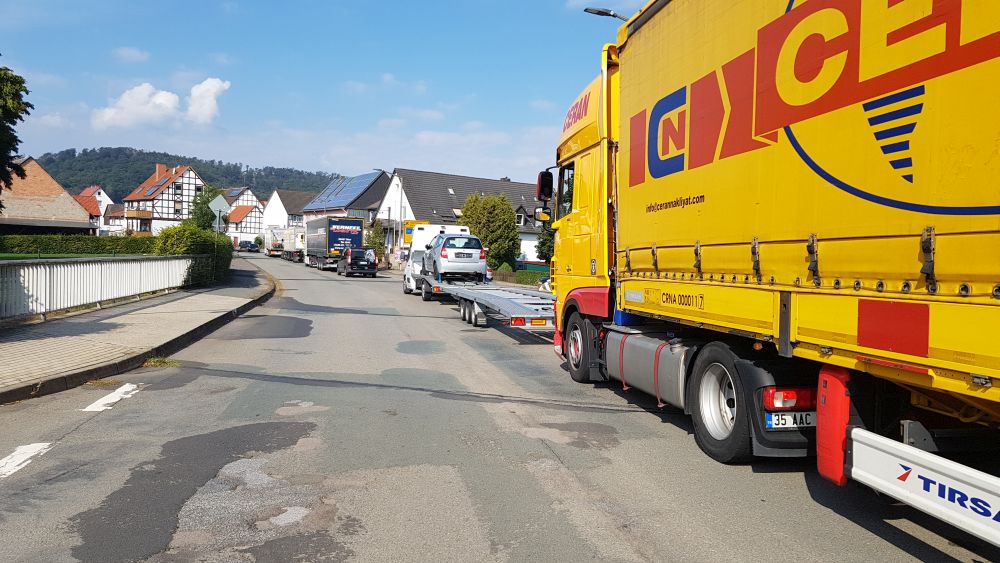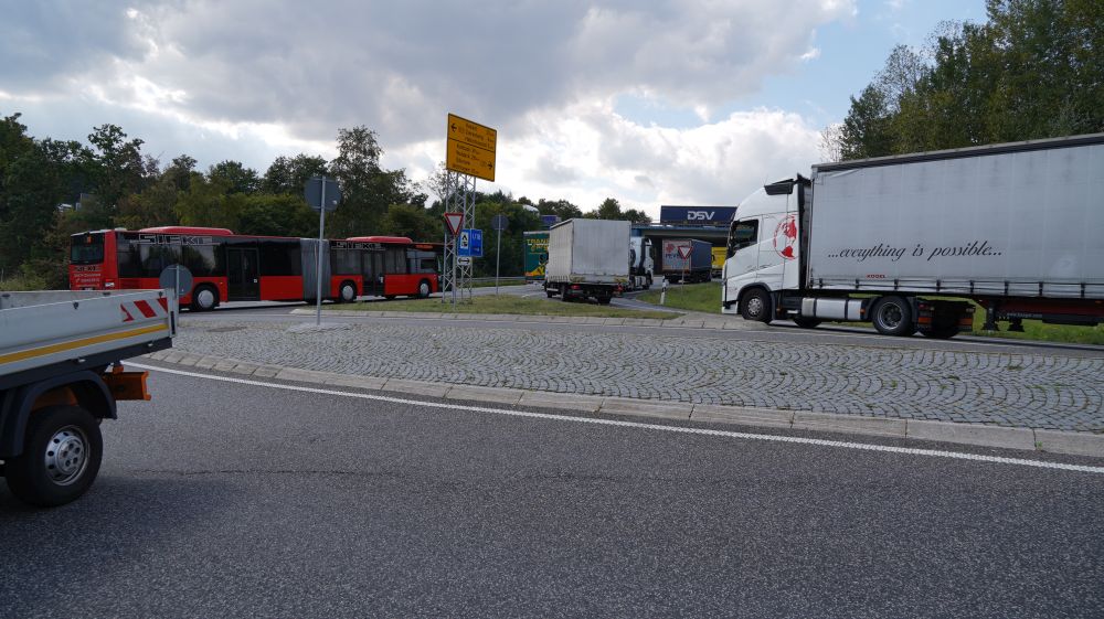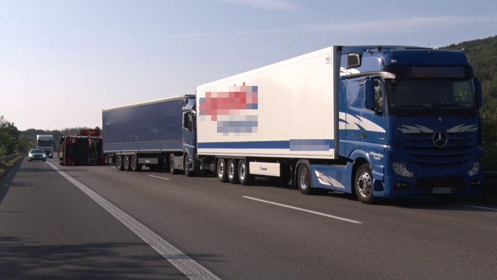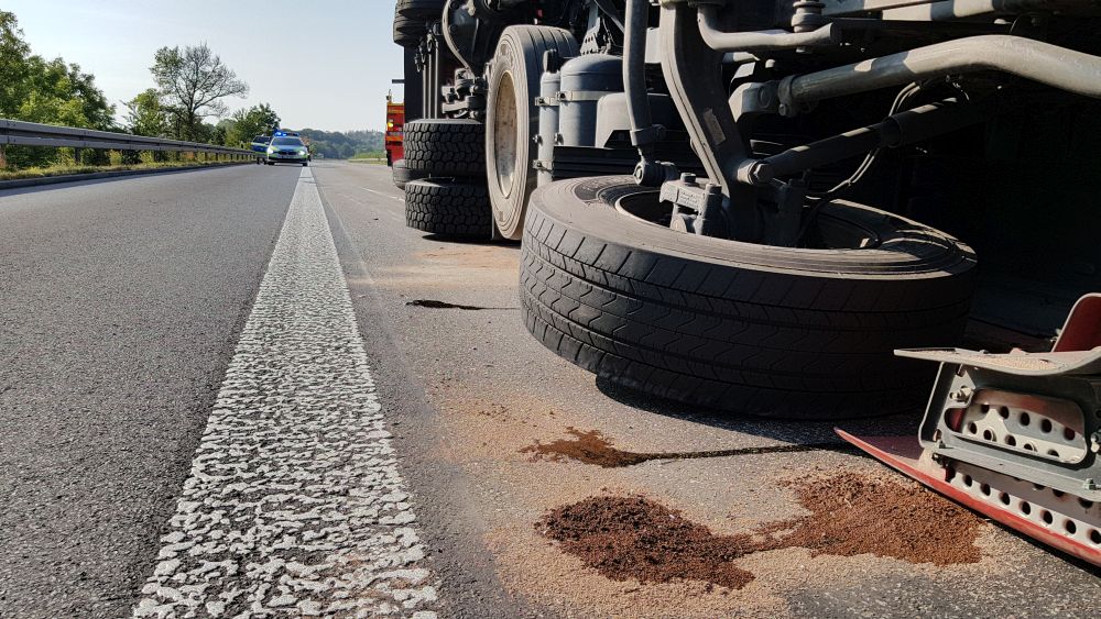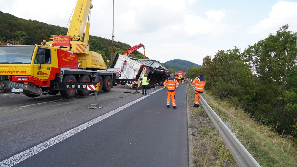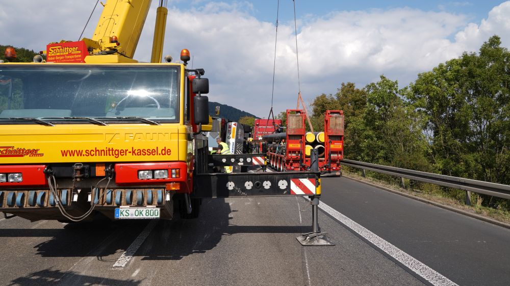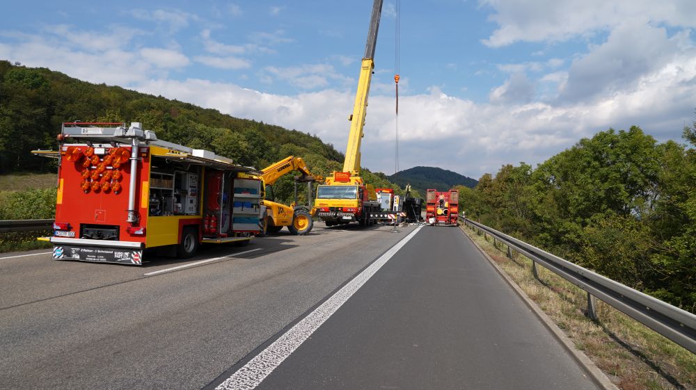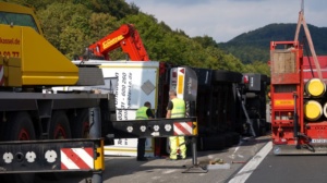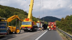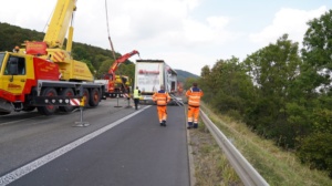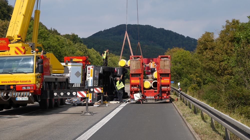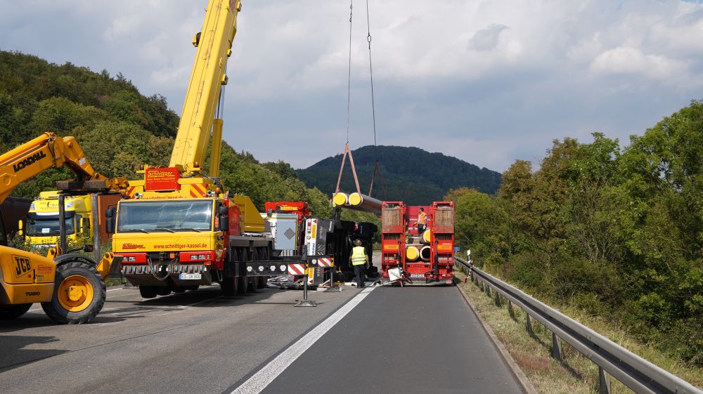 Sein Gegenlenken sorgte dann dafür, dass der LKW auf die Fahrbahn kippte und seitlich liegen blieb. Der Fahrer wurde nach letzten Informationen nur leicht verletzt, kam aber zur weiteren Untersuchung in ein Krankenhaus. Der Auflieger hatte große Kunststoffrohre geladen, die vor der Bergung des LKW erst einzeln mit viel Aufwand entladen werden mussten. Durch den Unfall kam es zu Kilometerlangen Staus. Viele LKW -Fahrer versuchten den Stau zu umfahren, was auch die Umgehungsstraßen komplett überlastete. Schlechte Nachrichten auch für vorbeifahrende Gaffer, die der Meinung waren den Unfall mit dem Handy zu filmen. Die Polizei hat die Übeltäter im Nachhinein aus dem Verkehr herausgezogen. Sie müssen jetzt mit 100.- Euro Bußgeld und einem Punkt in der Verkehrssünderkartei rechnen. Gegen 14.30 Uhr war dann die Fahrbahn wieder für den Verkehr frei gegeben. Nach Angaben der Polizei wird der Gesamtschaden mit rund 40.000.- Euro beziffert.