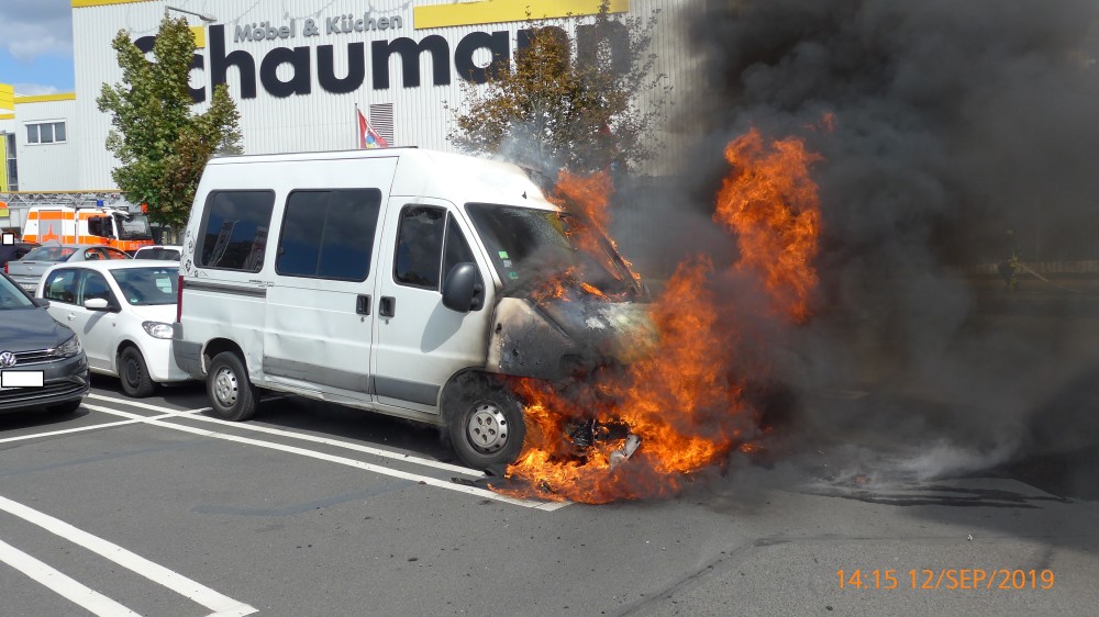 Kassel – Am Donnerstag gegen 14 Uhr wurde der Leitstelle der Feuerwehr Kassel ein Fahrzeugbrand im Bereich Knorrstraße Ecke Credestraße gemeldet. Beim Eintreffen der Einsatzkräfte war eine starke Rauchentwicklung und offnes Feuer im Bereich des Motorraumes eines Wohnmobiles zu erkennen. Bei der Erkundung zeigte sich, dass das Feuer schon auf den gesamten Innenraum übergegriffen hatte. Das Feuer drohte auch auf mehrere in unmittelbarer Nähe geparkte PKW überzugreifen.