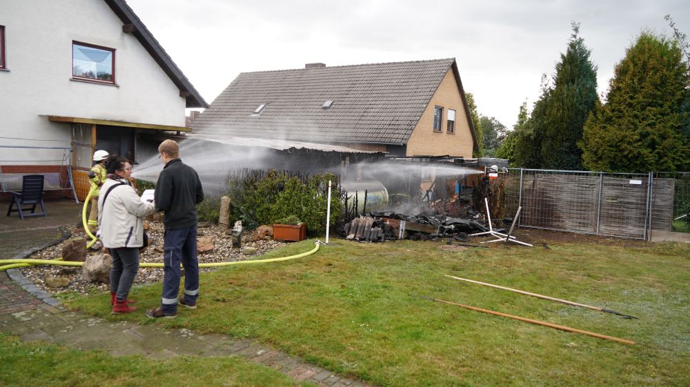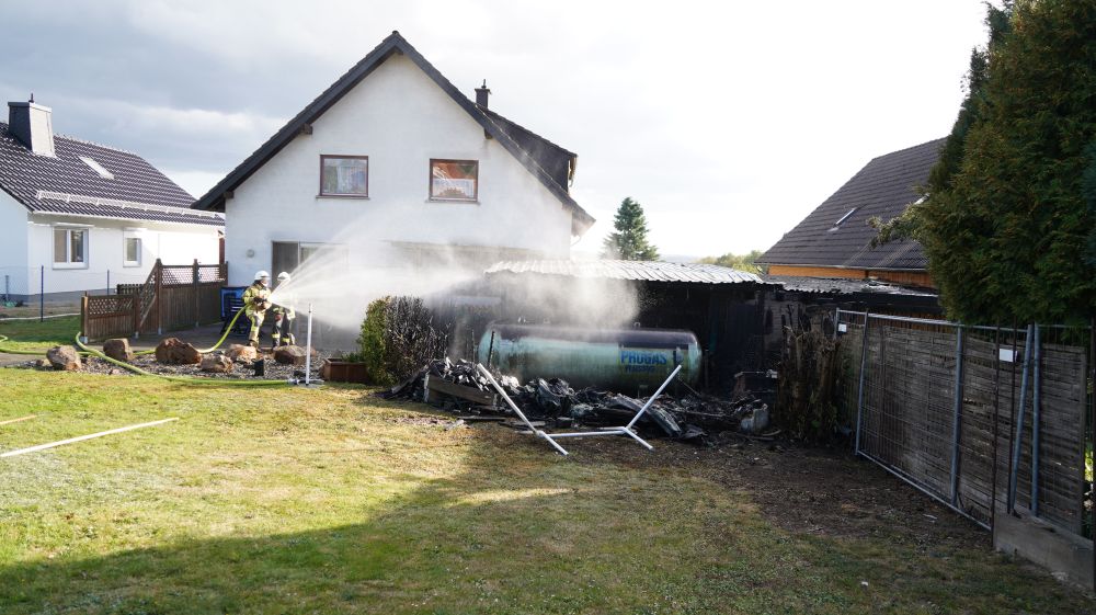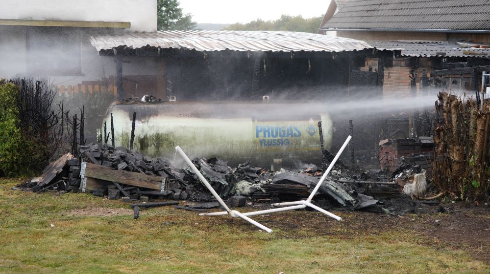 Über ein Sicherheitsventil stellte der Tank eigenständig einen Druckausgleich her, sodass für die Umgebung keine Gefahr bestand. Dennoch wurden sicherheitshalber die Bewohner im nahen Umkreis evakuiert. Die Feuerwehr konnte ein übergreifen auf das Wohnhaus verhindern, lediglich eine Scheibe ging durch die Hitze zu Bruch. Für die Gartenhütte gab es keine Rettung mehr, sie wurde komplett zerstört. Zum Einsatz kam die Feuerwehr Staufenberg mit allen Ortsteilen und rund 120 Einsatzkräften. (Aktuell läuft der Einsatz noch immer und wird noch einige Stunden andauern. Stand: 20.20 Uhr)