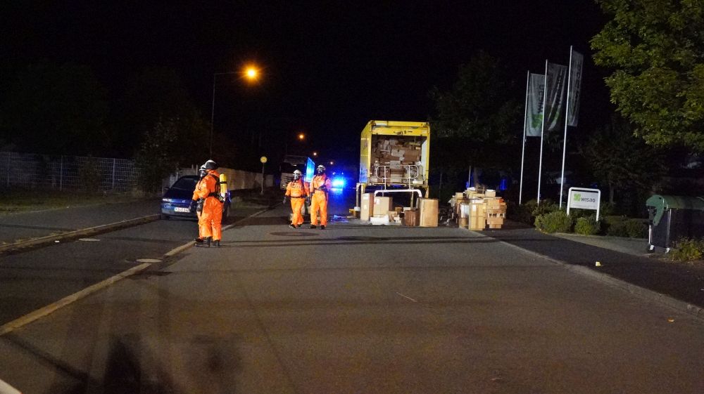 Kassel – Am späten Mittwochabend gegen 23.20 Uhr kam es zu einem Gefahrguteinsatz in der Antonius-Raab-Straße in Kassel-Waldau. Der Fahrer hatte sich selbst bei der Feuerwehr gemeldet, weil er auf der Ladefläche seines LKW eine auslaufende unbekannt Flüssigkeit bemerkte. Die Feuerwehr musste den nicht mit Gefahrgut gekennzeichneten LKW zunächst unter Schutzanzügen teilweise entladen um an den auslaufenden Behälter heranzukommen.