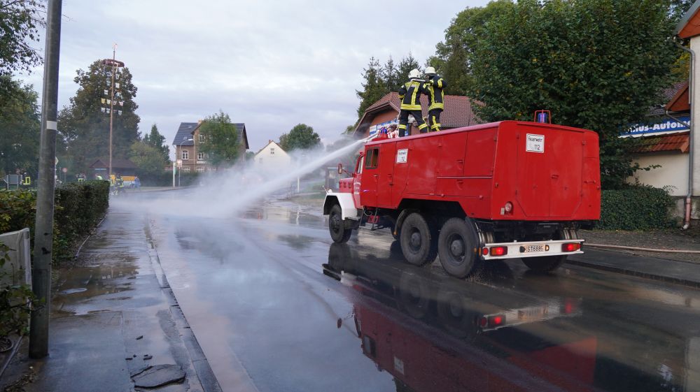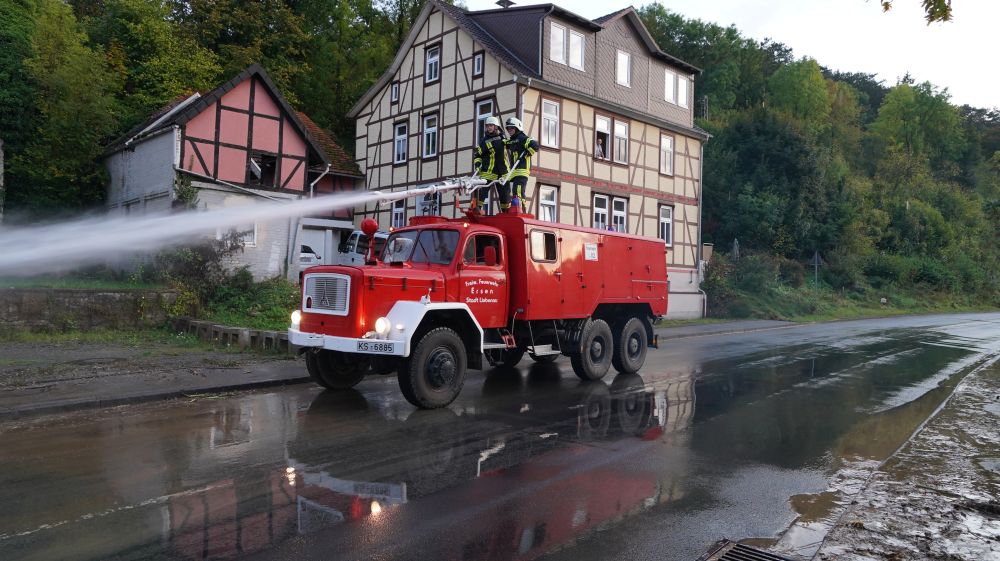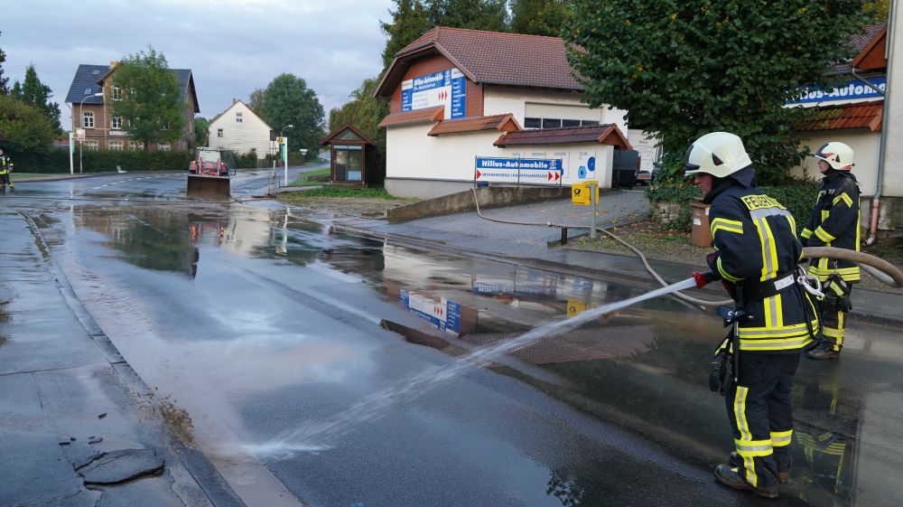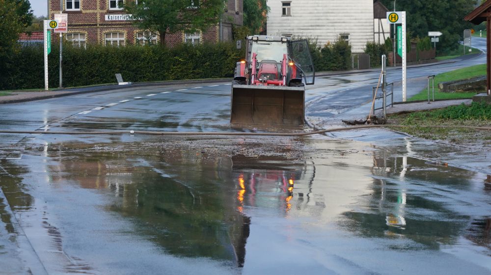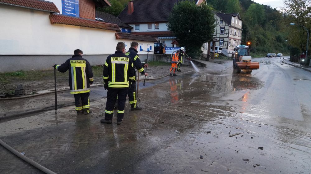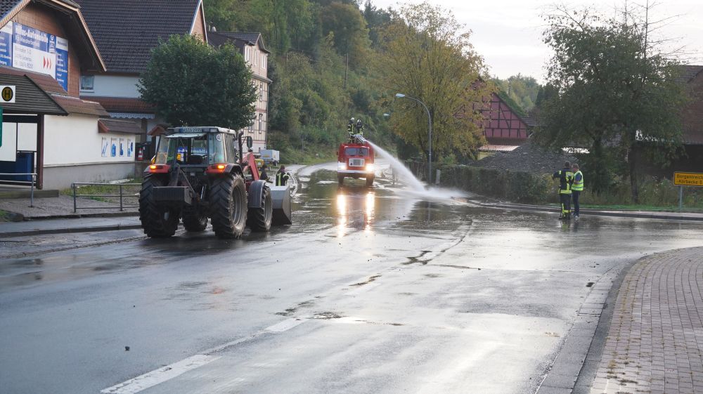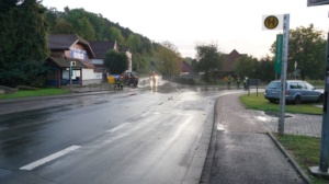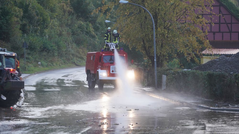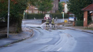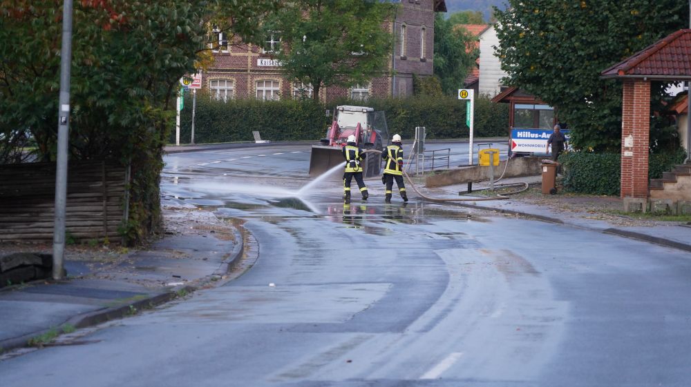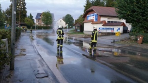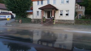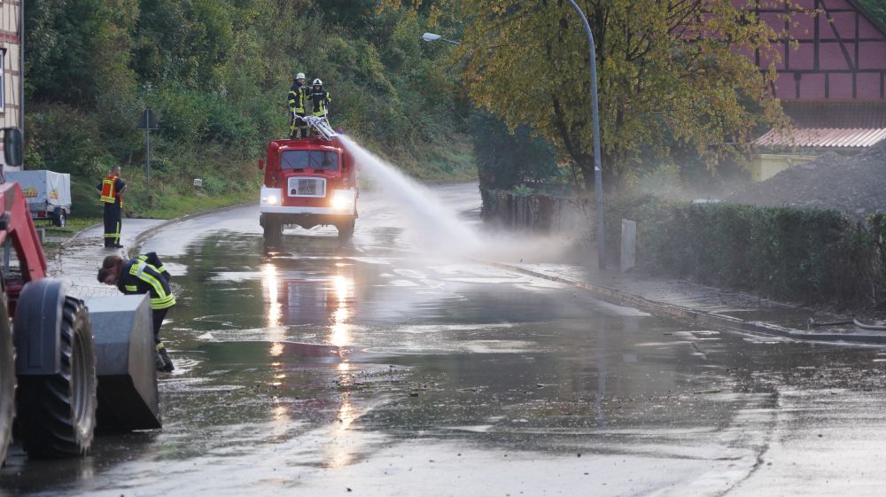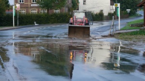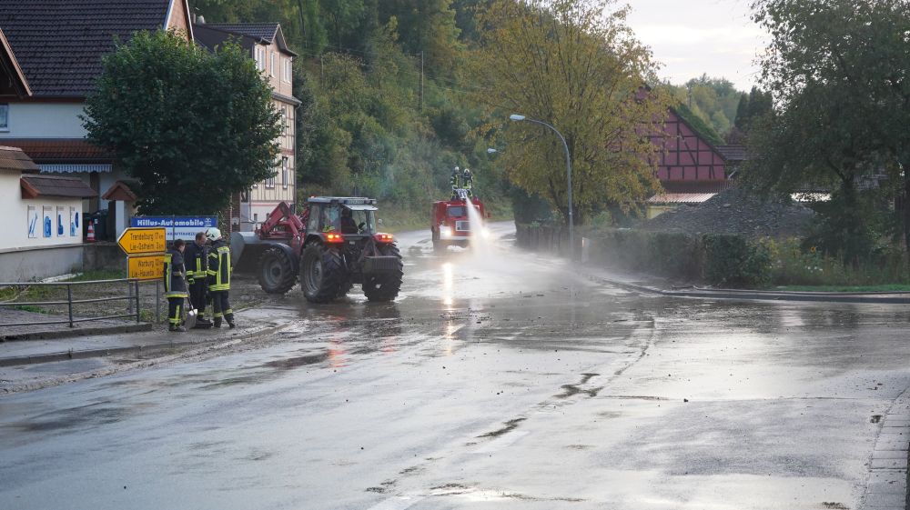 Liebenau – Am Mittwochabend gegen 18.00 Uhr kam es zu einem punktuellen Unwetter in Liebenau. Während es in der näheren Umgebung nur leicht regnete, sorgte über dem Ort ein Starkregen für eine Schlammlawine die sich in auf die Ortsmitte konzentrierte. Der Schlamm stand rund 20cm hoch auf den Straßen. Die zur Einsatzstelle gerufene Feuerwehr sorgte zunächst dafür, dass die verstopften Abwasserkanäle wieder frei wurden uns sicherten die Straße ab.
