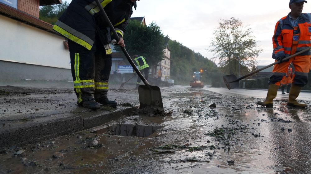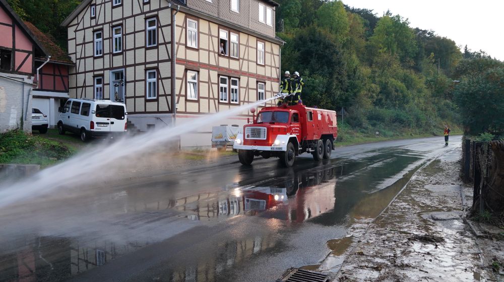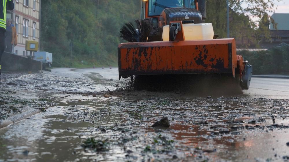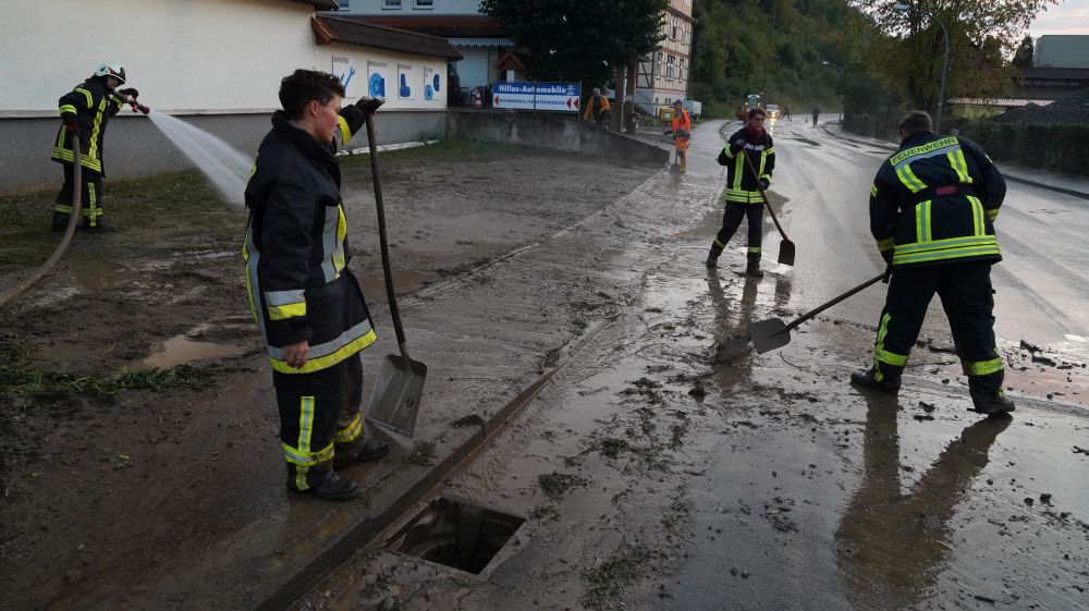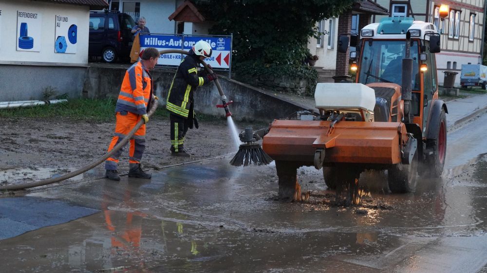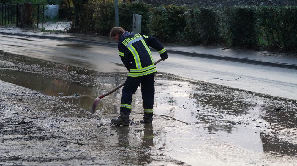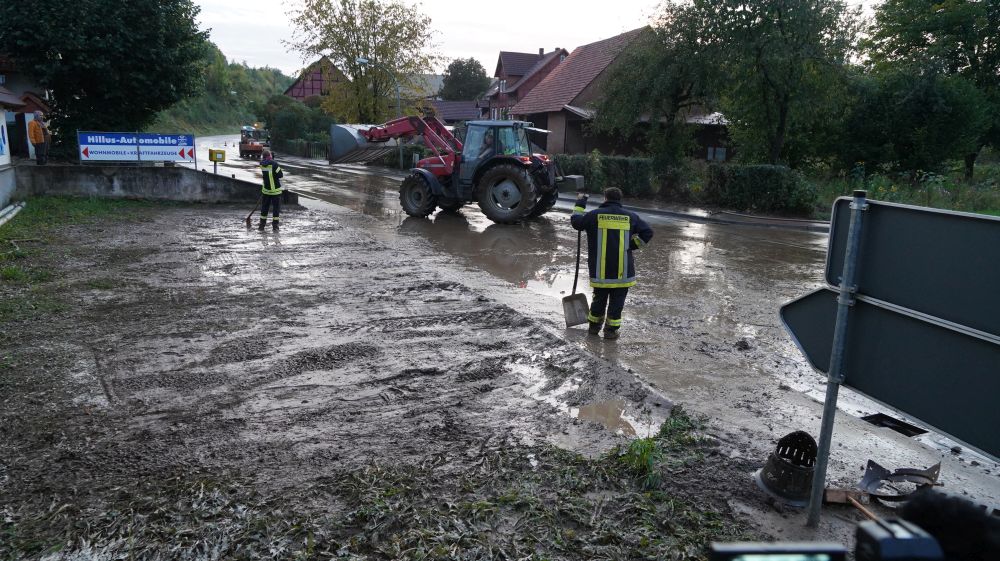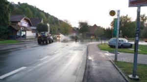 Mit einem Bagger wurde der Schlamm zusammengeschoben, mit Wasser verflüssigt und dann über die Kanalisation abgeleitet. Nach rund zweieinhalb Stunden war der Einsatz abgearbeitet. Am 28. Mai 2016 hatte eine Schlammlawine genau an der gleichen Stelle den Ort überflutet (- Wir berichteten -).