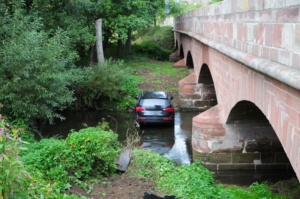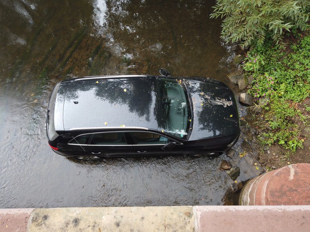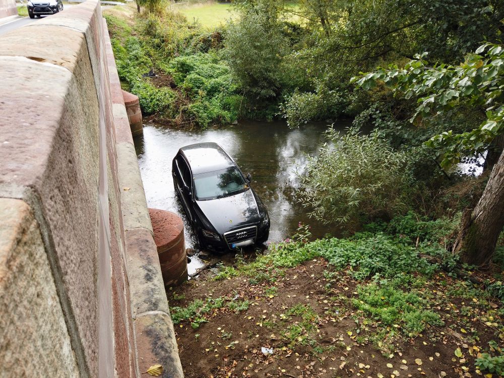 Borken – Glück im Unglück hatten ein 19-jähriger Gudensberg und sein 16 Jahre junger Beifahrer aus Bad Wildungen bei einem Verkehrsunfall am späten Mittwochvormittag nahe Kerstenhausen. Das Duo befand sich mit einem Firmenfahrzeug auf der Kreisstrasse 73 von Ansbach in Richtung Kerstenhausen. Kurz vor der Schwalmbrücke geriet das Fahrzeug im Bereich einer Rechtskurve nach links von der Fahrbahn ab, fuhr schräg eine Böschung entlang, verfehlte im Verlauf nur um wenige Zentimeter eine massive Sandsteinmauer und landete schließlich im rechten Seitenarm der Schwalm.