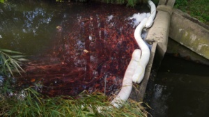 Wolfhagen – Am Donnerstagmittag gegen 12.00 Uhr wurde die Feuerwehr Wolfhagen zu einem erneuten Einsatz gerufen. Erst in der Nacht mussten die Kameraden und Kameradinnen bis in die frühen Morgenstunden einen Brand in Viesebeck löschen. Diesmal hatte ein Bauer den Notruf gewählt, weil sich das Wasser in einem Bach „Mühlenwasser“ in Wolfhagen rot eingefärbt hatte. Schnell war klar, dass es sich bei dem Stoff um Heizöl handelte.