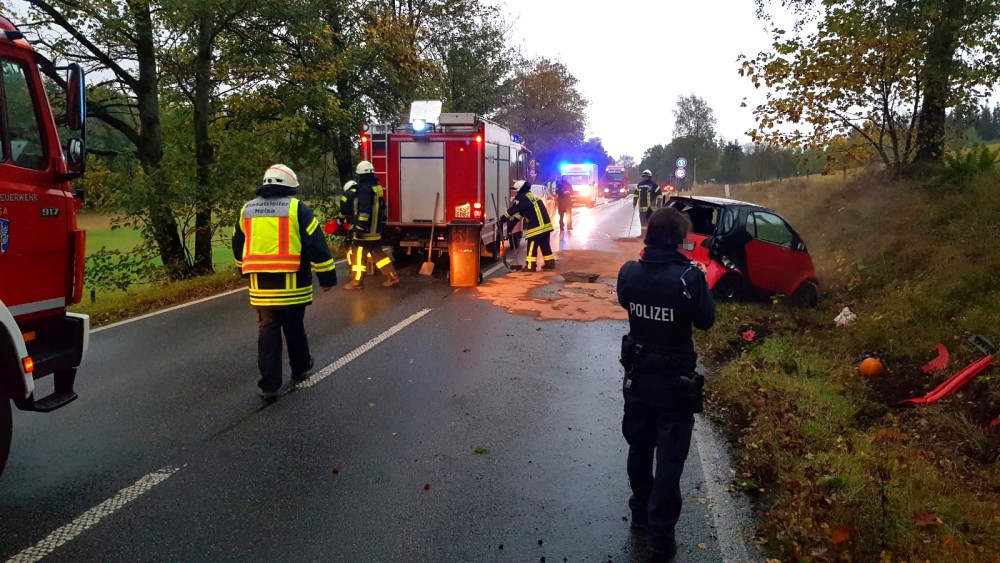 Helsa – Am Freitag kam es auf der B451 in Höhe Pfaffenberg zu einem Verkerhsunfall. Die Fahrerin eines Smart befuhr die Bundesstraße von Wickenrode kommend in Richtung Großalmerode. Aus bislang nicht geklärten Ursachen, kam sie mit seinem Fahrzeug gegen 18.20 Uhr von der Straße ab, drehte sich mehrfach und kam in einem Graben zum stehen. Dabei wurde die Fahrerin leicht verletzt und wurde nach einer Erstversorgung an der Unfallstelle in ein Krankenhaus eingeliefert.