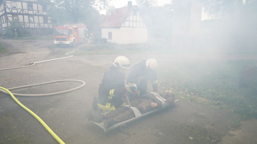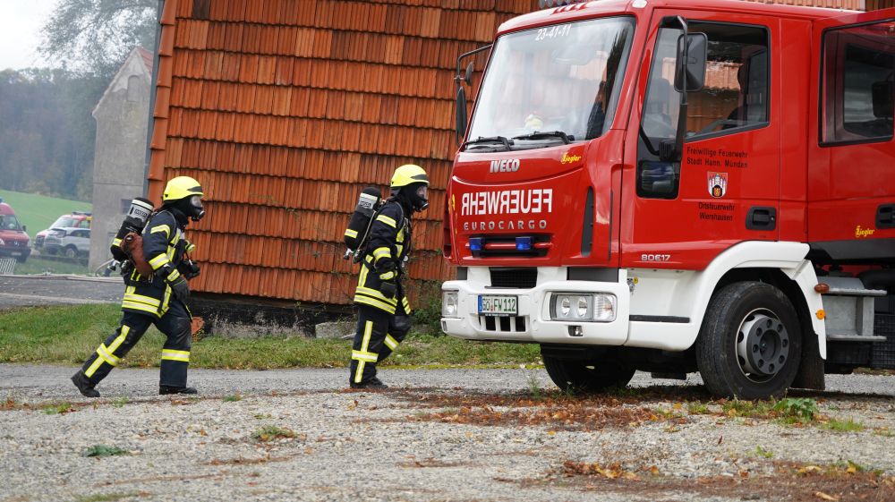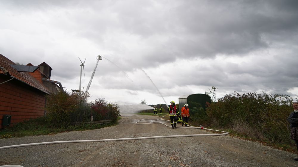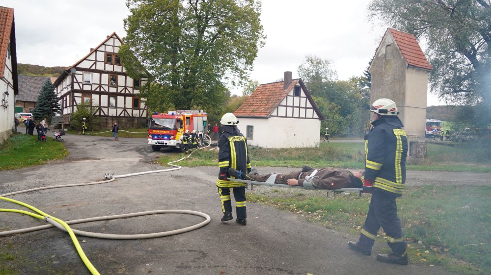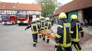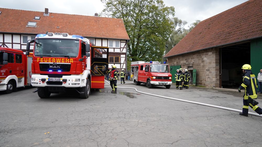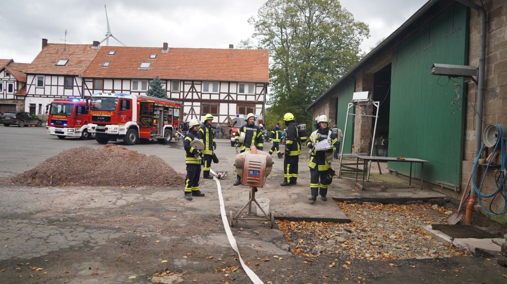 Lediglich die Kommunikation per Digitalfunk lässt zu wünschen übrig, da Niedersachsen andere Kanäle verwendet. Die Übung wurde in zwei Bereiche wie Löschen des Brandobjekts und Vermisstensuche, sowie die Rettung einer Person mit schwerem Gerät, die unter einer Baggerschaufel eingeklemmt war. Die Übung fand auf dem Gutshof Ellerode statt den der Graf von Berlepsch schon seit Jahren für solche Übungen zur Verfügung stellt. Die Wasserversorgung wurde über einen angrenzenden Löschteich abgewickelt. Nach letzten Informationen zeigen sich die Verantwortlichen mit dem Ergebnis der Übung zufrieden.
