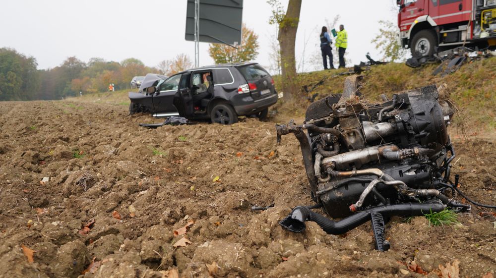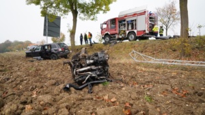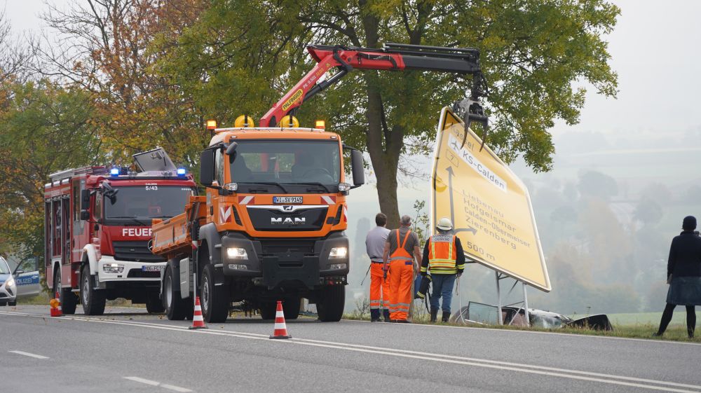 Der Aufprall war so heftig, dass der Motorblock herausgerissen wurde und rund 20 Meter durch die Luft flog. Ersthelfer konnten den schwer verletzten Mann aus dem Fahrzeug befreien und betreuen bis der Rettungsdienst eintraf. Danach wurde er nach einer Erstversorgung an der Unfallstelle ins Klinikum nach Kassel eingeliefert. Wie bekannt wurde roch der Mann stark nach Alkohol, stimmte einer Alkoholkontrolle jedoch nicht zu. Die B7 musste kurzfristig voll gesperrt werden. Zum Einsatz kam neben Notarzt, Polizei und Rettungsdienst die Feuerwehren aus Obermeiser, Westuffeln und Calden mit insgesamt 21 Einsatzkräften.
