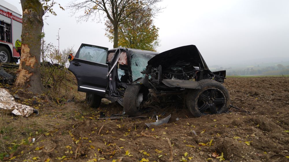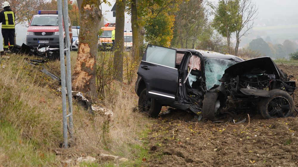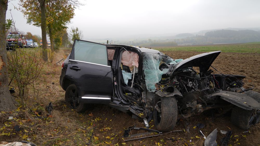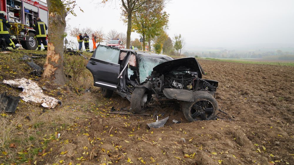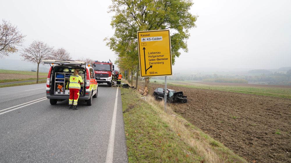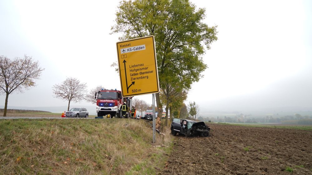Calden – Am Mittwochmorgen kam es gegen 10.30 Uhr auf der B7 zwischen Oberlistingen und Obermeiser zu einem schweren Verkehrsunfall. Nach ersten Informationen der Polizei war der Fahrer eines PKW mit überhöhter Geschwindigkeit unterwegs. Der Mann setzte dann trotz durchgezogener Linie zum Überholen an und verlor dabei die Kontrolle über sein Fahrzeug. Er fuhr mit seinem SUV jedoch so weit links, dass er in die Bankette geriet, bekam das Fahrzeug offensichtlich wieder in den Griff, fuhr dann jedoch auf seiner Fahrspur zunächst gegen ein Verkehrsschild und schleuderte dann frontal gegen einen Baum.