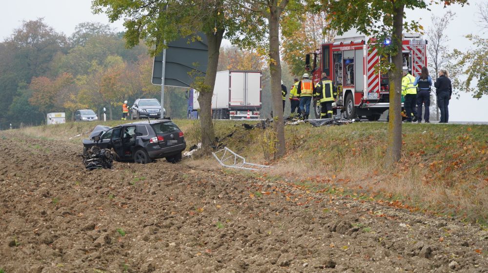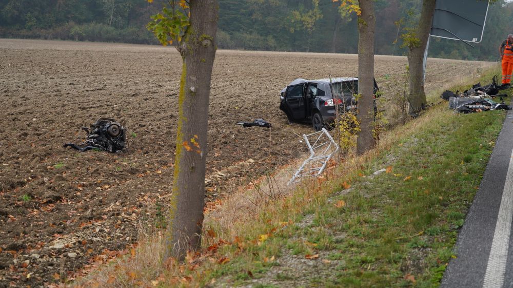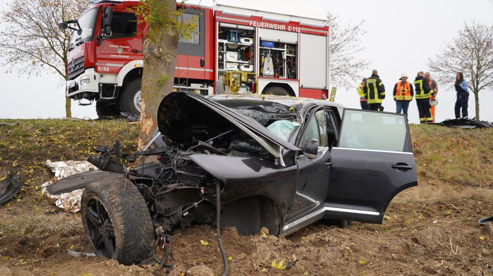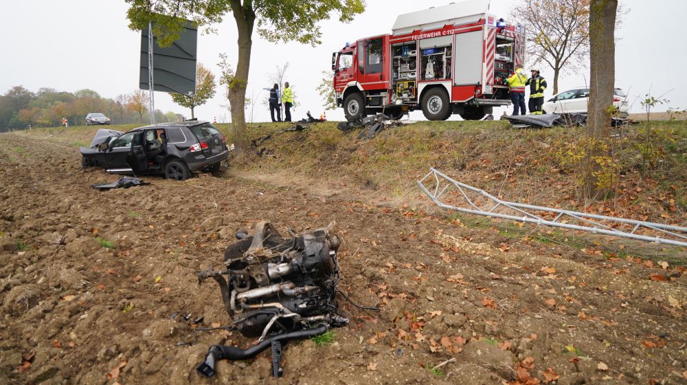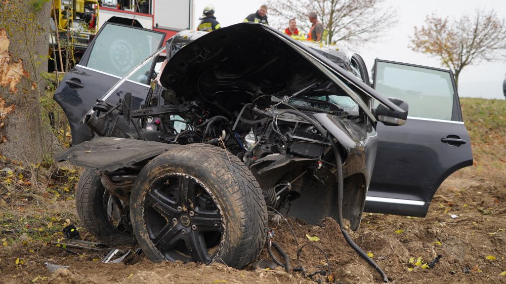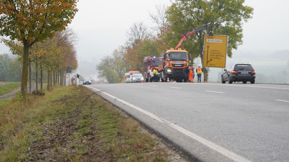 Calden – Am Mittwochmorgen kam es gegen 10.30 Uhr auf der B7 zwischen Oberlistingen und Obermeiser zu einem schweren Verkehrsunfall. Nach ersten Informationen der Polizei war der Fahrer eines PKW mit überhöhter Geschwindigkeit unterwegs. Der Mann setzte dann trotz durchgezogener Linie zum Überholen an und verlor dabei die Kontrolle über sein Fahrzeug. Er fuhr mit seinem SUV jedoch so weit links, dass er in die Bankette geriet, bekam das Fahrzeug offensichtlich wieder in den Griff, fuhr dann jedoch auf seiner Fahrspur zunächst gegen ein Verkehrsschild und schleuderte dann frontal gegen einen Baum.