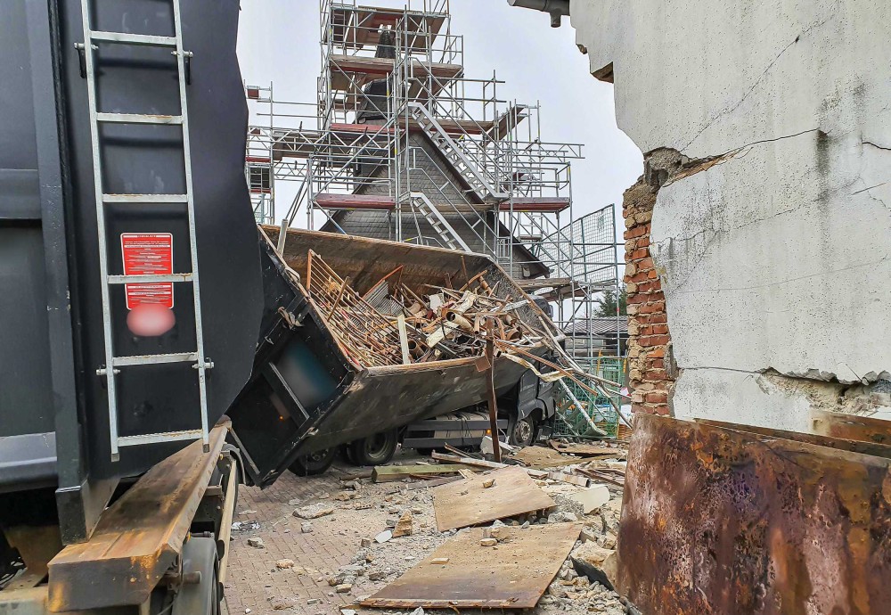 Erst nach Bergung des Lasters und Untersuchungen durch das Bauamt und von Statikern dürfte der tatsächliche, wahrscheinlich sehr hohe Schaden feststehen. Bei dem Lastwagen handelt es sich um einen großen Lastwagen mit einer Containermulde und einen Anhänger. Geladen hatte der Lkw rund 20 Tonnen Schrott. Die Bergungsarbeiten dauern auch noch am Dienstag an.