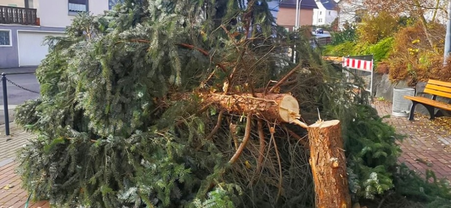 Dillenburg-Frohnhausen – Unbekannte vergriffen sich an dem vor der ehemaligen Schule „Am Brunnen“ aufgestellten Weihnachtsbaum. Zwischen Samstagmittag (23.11.2019) und Sonntagfrüh (24.11.2019) sägten die Täter die etwa acht Meter hohen Nordmanntanne in einer Höhe von rund 1,20 ab. Der Baum stürzte auf den Gehweg.