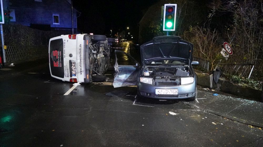 Während ein Fahrer über die Frontscheibe gerettet werden konnte, musste bei dem zweiten Beteiligten die Fahrertür mit schwerem Gerät herausgeschnitten werden. Bei dem Unfall wurde eine Person eher leicht, die andere schwer verletzt. Beide wurden nach einer Erstversorgung an der Unfallstelle in ein Krankenhaus eingeliefert. Die Feuerwehr musste neben der Befreiung der Unfallbeteiligten die Unfallstelle ausleuchten. Zum Einsatz kam die Feuerwehr Niestetal ein NEF, zwei RTW und die Polizei. Die Straße musste während der gesamten Unfallaufnahme komplett gesperrt werden.