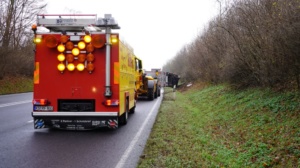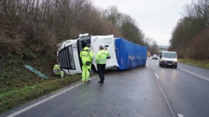 Kaufungen – Auf der B7 bei Kaufungen im Landkreis Kassel kam es gegen 9:45 Uhr zu einem Verkehrsunfall. Ein 56-jährige Fahrer war mit seinem Sattelzug in Richtung Helsa unterwegs und zwischen den Abfahrten Lohfelden und Oberkaufungen aus noch unbekannten Gründen nach rechts von der Fahrbahn abgekommen und kippte im Graben um.