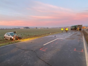Fritzlar – Zu einem schweren Verkehrsunfall kam es am Freitagmorgen auf der K13 zwischen Fritzlar und Zennern. Auf spiegelglatter Straße kollidierten ein PKW und ein LKW Frontal. Eine Person wurde schwer verletzt. Straßenglätte war vermutlich die Ursache für einen schweren Verkehrsunfall heute Morgen zwischen Fritzlar und Zennern, bei dem eine 21-jährige Verkehrsteilnehmerin aus Wabern schwer verletzt wurde. Kurz vor der Autobahnunterführung kollidierte die junge Frau frontal mit einem ihr entgegenkommenden Rübenlaster, der von einem 49-jährigen Mann aus Friedland gesteuert wurde.