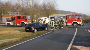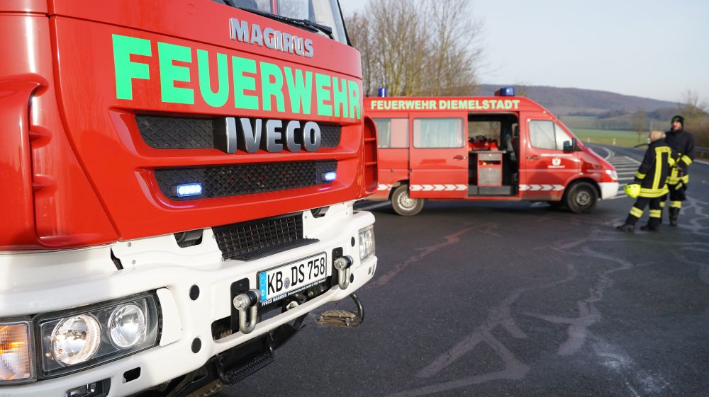 Diemelstadt – Am Samstagvormittag gegen 11.00 Uhr kam es auf der B252 bei Diemelstadt-Rhoden im Kreuzungsbereich zu einem Unfall mit zwei beteiligten Fahrzeugen, die offensichtlich frontal zusammengestoßen waren. Eine Person war beim Eintreffen der Feuerwehr noch im Fahrzeug eingeschlossen. Nach einer Erstversorgung an der Unfallstelle wurden beide Verletzten in umliegende Krankenhäuser eingeliefert.