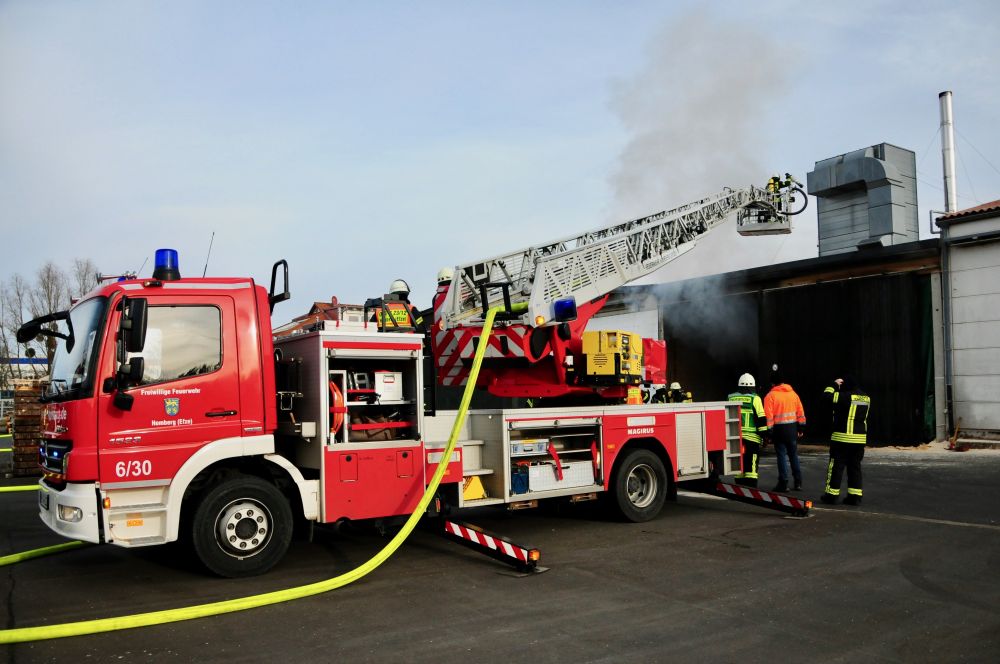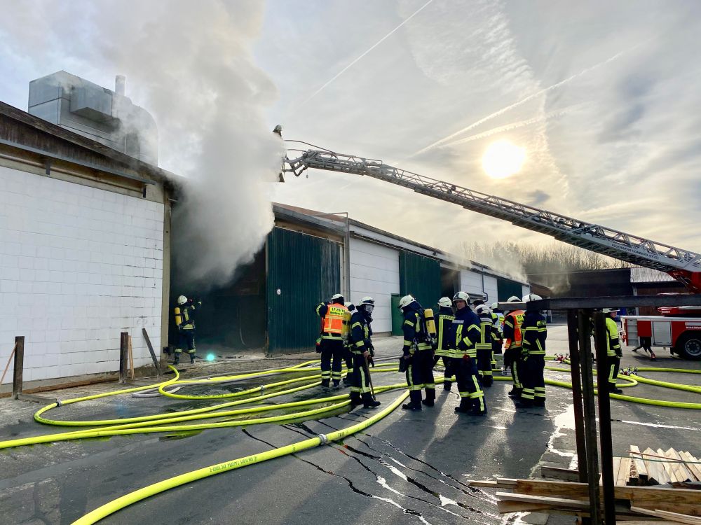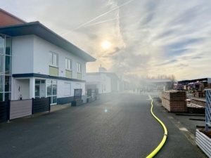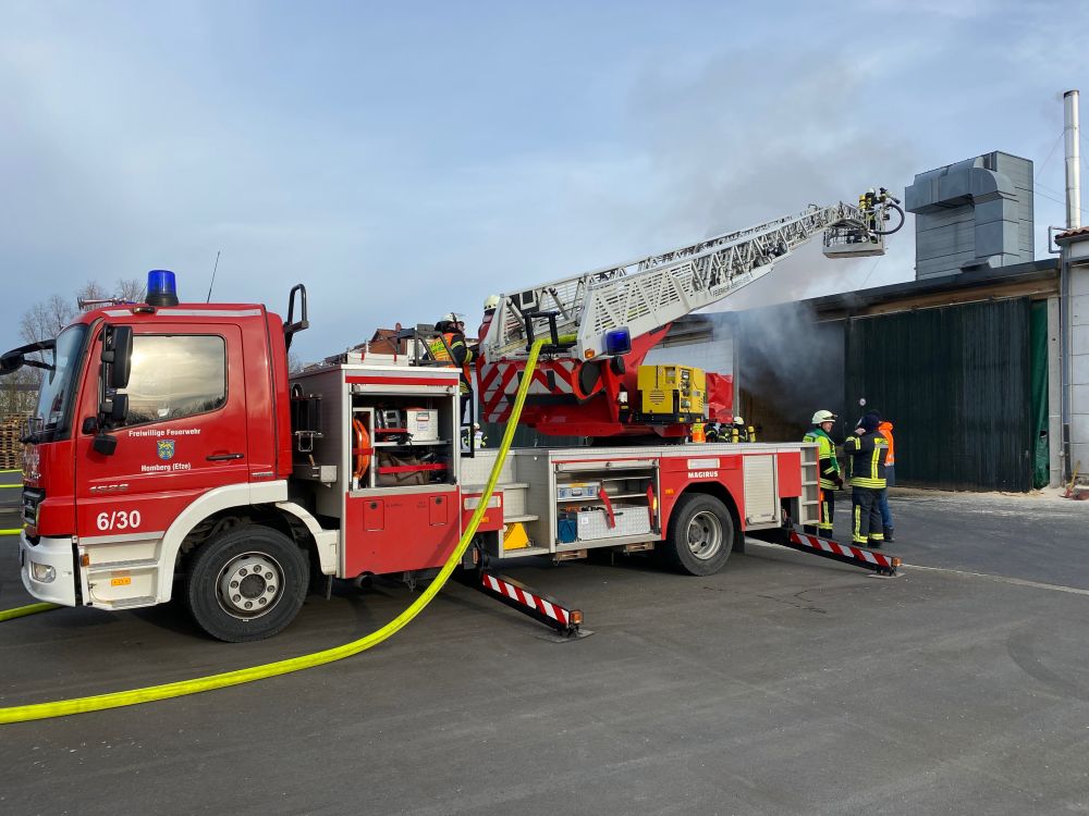 Homberg (Efze) – In einer Holzgroßhandlung im Homberger Industriegebiet kam es am Sonntagmittag zu einem Brand eines Spänebunkers. Die Rauchsäule war Kilometerweit zu sehen. Rund 50 Einsatzkräfte der Feuerwehr Homberg und Holzhausen waren nötig, um einen Spänebunkerbrand in einem Säge- und Hobelwerk in der Werner-von-Siemens-Strasse zu bekämpfen. Bei Ankunft der ersten Einsatzkräfte drang massiver Rauch aus einem Hallengebäude.