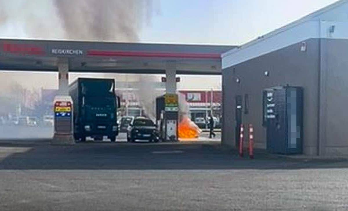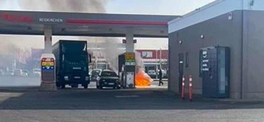 Reiskirchen – Am Dienstag konnten ein Autofahrer und eine Streifenwagenbesatzung der Autobahnpolizei auf einem Gelände einer Tankstelle in Reiskirchen offenbar Schlimmeres verhindern. Zwar brannte ein PKW aus. Aufgrund der schnellen Reaktion konnte verhindert werden, dass das Feuer sich nicht weiter ausbreitete und niemand verletzt wurde. Eher zufällig war eine Streife der Autobahnpolizei aus Butzbach am Dienstag, gegen 10.15 Uhr, auf dem Gelände einer Tankstelle in der Grünberger Straße. Die Beamten wollten dort eigentlich einen Lasterfahrer kontrollieren. Noch bevor die Beamten ihre Arbeit machen konnten, sahen sie einen PKW mit stark qualmendem Motor. Das Auto stand direkt an einer Zapfsäule, als das Feuer offenbar aus technischer Ursache ausbrach. Der Autofahrer konnte das Fahrzeug noch einige Meter wegschieben, bevor es in Flammen aufging. Die Polizeibeamten fragten dann bei mehreren LKW-Fahrern, die in der Nähe parkten und im angrenzenden Lebensmittelmarkt nach und liehen sich dort insgesamt neun Feuerlöscher mit je sechs Kilogramm Inhalt aus. Mit den „geliehenen“ Feuerlöschern schafften es die Beamten den bereits in Vollbrand befindlichen PKW zu löschen.