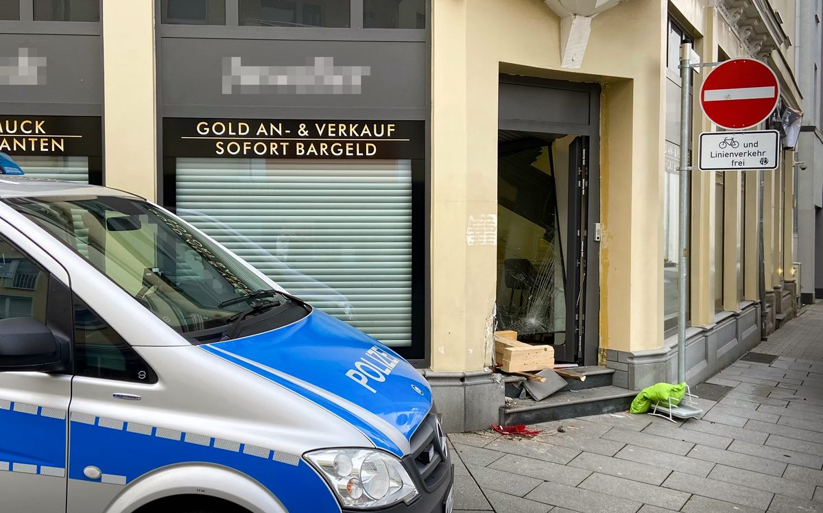 Gießen – Eine Polizeistreife konnte am frühen Freitagmorgen auf frischer Tat einen mutmaßlichen Einbrecher festnehmen. Offenbar war der 41-Jährige gerade dabei, einen Einbruch in ein Juweliergeschäft in der Bahnhofstraße zu begehen. Den Beamten war ein dunkler PKW gegen 03.50 Uhr in der Bahnhofstraße aufgefallen. Der PKW stand mit dem Heck direkt vor der Eingangstür eines Juweliergeschäftes. Da zudem der optische Melder des Juweliergeschäftes rot leuchtete und auch die Eingangstür offenstand, mussten die Beamten von einem Einbruch ausgehen. Kurz danach lief eine Person aus dem Geschäft und stieg in den PKW. Offenbar wollte der mutmaßliche Einbrecher flüchten. Die Beamten setzten ihren PKW direkt hinter das Auto des Unbekannten. Wenig später stieg der Unbekannte aus und wollte zu Fuß flüchten. Die Beamten konnten den Mann aber nach einigen Metern festnehmen. Es stellte sich heraus, dass es sich bei dem Tatverdächtigen um einen 41 – jährigen polnischen Staatsangehörigen handelt. Offenbar, so die ersten Ermittlungen, hatte der Verdächtige eine Art Holzramme dazu benutzt, um mit dem PKW rückwärts dagegen zu fahren und die Tür rabiat aufzubrechen. In dem Auto fanden die Beamten dann bei der Durchsuchung Gegenstände, die vermutlich kurz zuvor aus dem Juweliergeschäft entwendet wurden. Bislang gibt es keine Hinweise darauf, dass noch weitere Personen an der Tat beteiligt waren. Die weiteren Ermittlungen dazu dauern an.