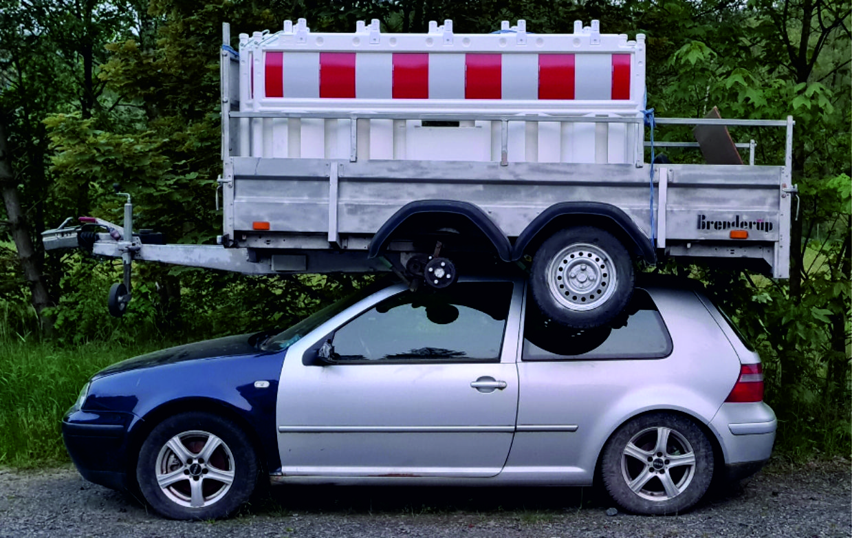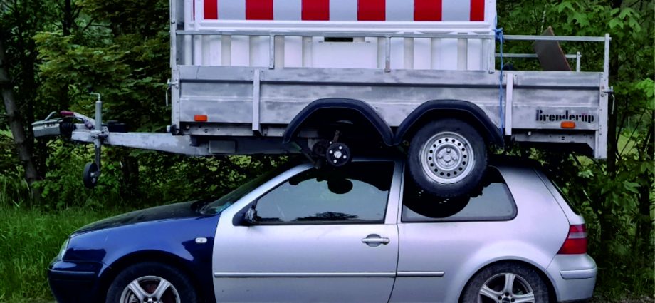 Herborn-Burg – Ein wohl nicht alltäglicher Einsatz beschäftigt derzeit die Polizei in Mittelhessen. Ein 69-Jähriger meldete am Samstagabend, gegen 21.15 Uhr, einen Anhänger, der auf einem Pkw stehen sollte. Als die Beamten in der Junostraße eintrafen, konnten Sie die kuriose Meldung bestätigen. Der besagte Anhänger befand sich um 19:30 Uhr noch in der Junostraße Höhe der Hausnummer 20. Offenbar hatte ein bislang Unbekannter, vermutlich mit einem Stapler, den Pkw-Anhänger aufgeladen und ihn rund 100 Meter weiter, auf dem Dach des Golfs wieder abgeladen. Der VW wurde durch die Aktion beschädigt. Die Polizei sucht nun Zeugen: Wem sind Personen in der Junostraße aufgefallen, die den Anhänger umgesetzt haben? Wer hat verdächtige Beobachtungen gemacht? Hinweise erbittet die Herborner Polizei unter Tel.: (02772) 47050.