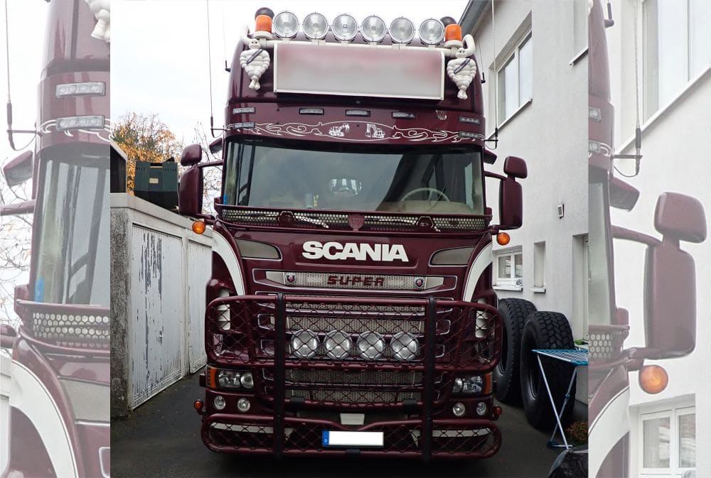 Bad Nauheim – Am Mittwoch (18.11.2020) kontrollierte das BAG einen LKW in der Wetterau. Das Fahrzeug war den Bundeskontrolleuren durch seine optische Erscheinung aufgefallen, weshalb sie einer genaueren Kontrolle unterzogen. Die Scania-Zugmaschine fiel bereits wegen ihrer vielen Zusatzscheinwerfer und dem großen „Kuhfänger“ an der Front auf. Man sah sofort, dass sich hier jemand Mühe bei der Ausgestaltung seines Trucks gegeben hatte. Die Kontrolleure interessierten sich aber eher für die vorschriftsmäßige Ausstattung des Fahrzeugs.