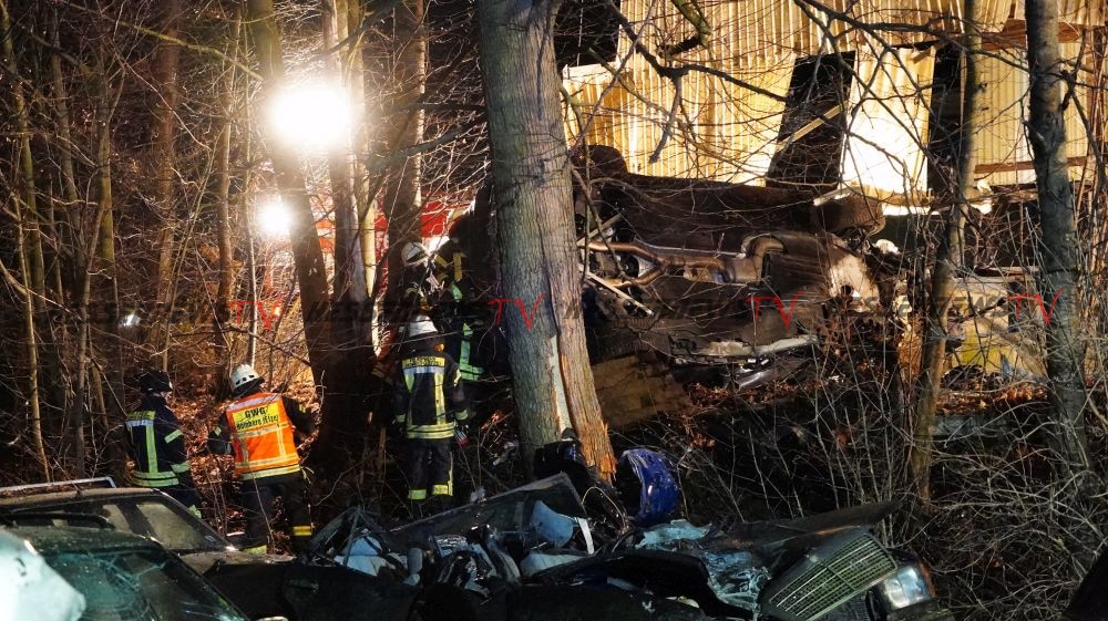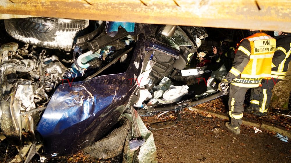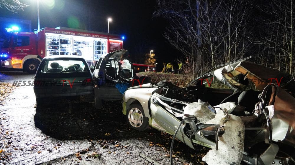 Der 37-jährige Fahrer musste von der alarmierten Feuerwehr aus dem Fahrzeug befreit werden. Der Beifahrer, ein 33-jähriger aus Knüllwald wurde aus dem Fahrzeug geschleudert. Ein 35-jähriger Homberger, welcher auf der Rückbank saß, konnte sich selbst aus dem Fahrzeug befreien. Alle drei Fahrzeuginsassen erlitten teilweise schwerste Verletzungen. Der Beifahrer wurde von einem Rettungshubschrauber, der Fahrer und der Mitfahrer von Rettungswagen in Kasseler Kliniken eingeliefert. Da die Unfallursache derzeit nicht feststeht, wurde von der Staatsanwaltschaft Kassel ein Unfallgutachter beauftragt. Die Anzahl der beteiligten Fahrzeuge sowie die Höhe des Gesamtschadens stehen zurzeit noch nicht fest.