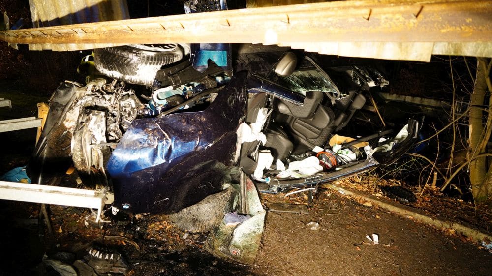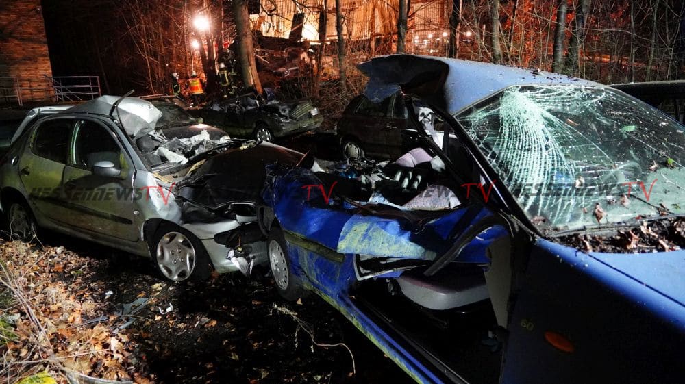 Homberg Efze – Ein 37-jähriger Homberger befuhr mit seinem BMW mit hoher Geschwindigkeit die ansteigende Friedrich-Kramen-Straße in Homberg Efze. In einer Rechtskurve kam er aufgrund der Geschwindigkeit nach links von der Straße ab und flog auf ein Grundstück mit geparkten Gebrauchtfahrzeugen, wo der BMW auf der Seite zum Liegen kam. Mehrere der Gebrauchtfahrzeuge wurden hierbei beschädigt.
