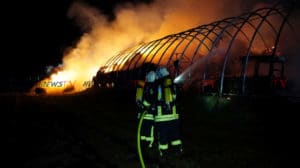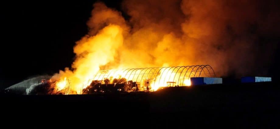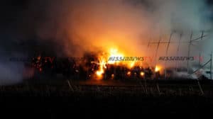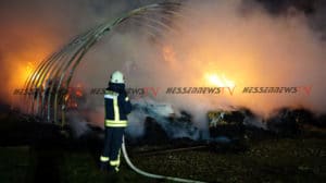 Bad Emstal – Am Silvesterabend gegen 19:30 Uhr wurde die Feuerwehr Bad Emstal Balhorn zu einem Brand in die Ortslage alarmiert. Zur Unterstützung wurde die Feuerwehr Wolfhagen mit alarmiert. Als die ersten Einsatzkräfte an der Einsatzstellen angekommen sind, stand ein landwirtschaftlicher Unterstand in Vollbrand. Es brannten circa 150-200 Rundballen sowie mehrere landwirtschaftliche Geräte. Die Löscharbeiten dauerten bis in die Nacht an. Die Brandursache ist unklar.