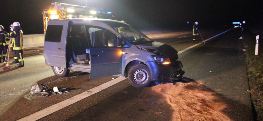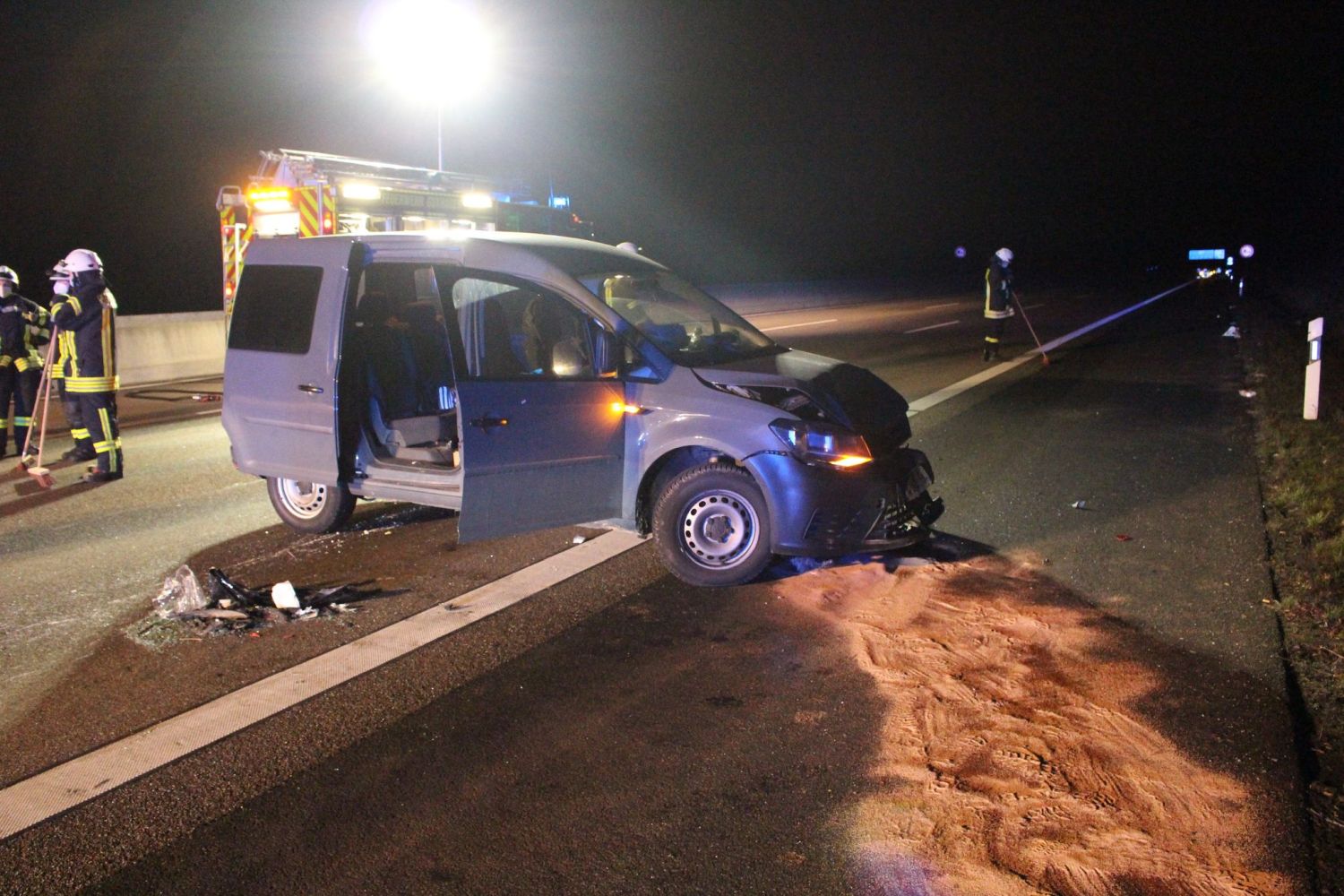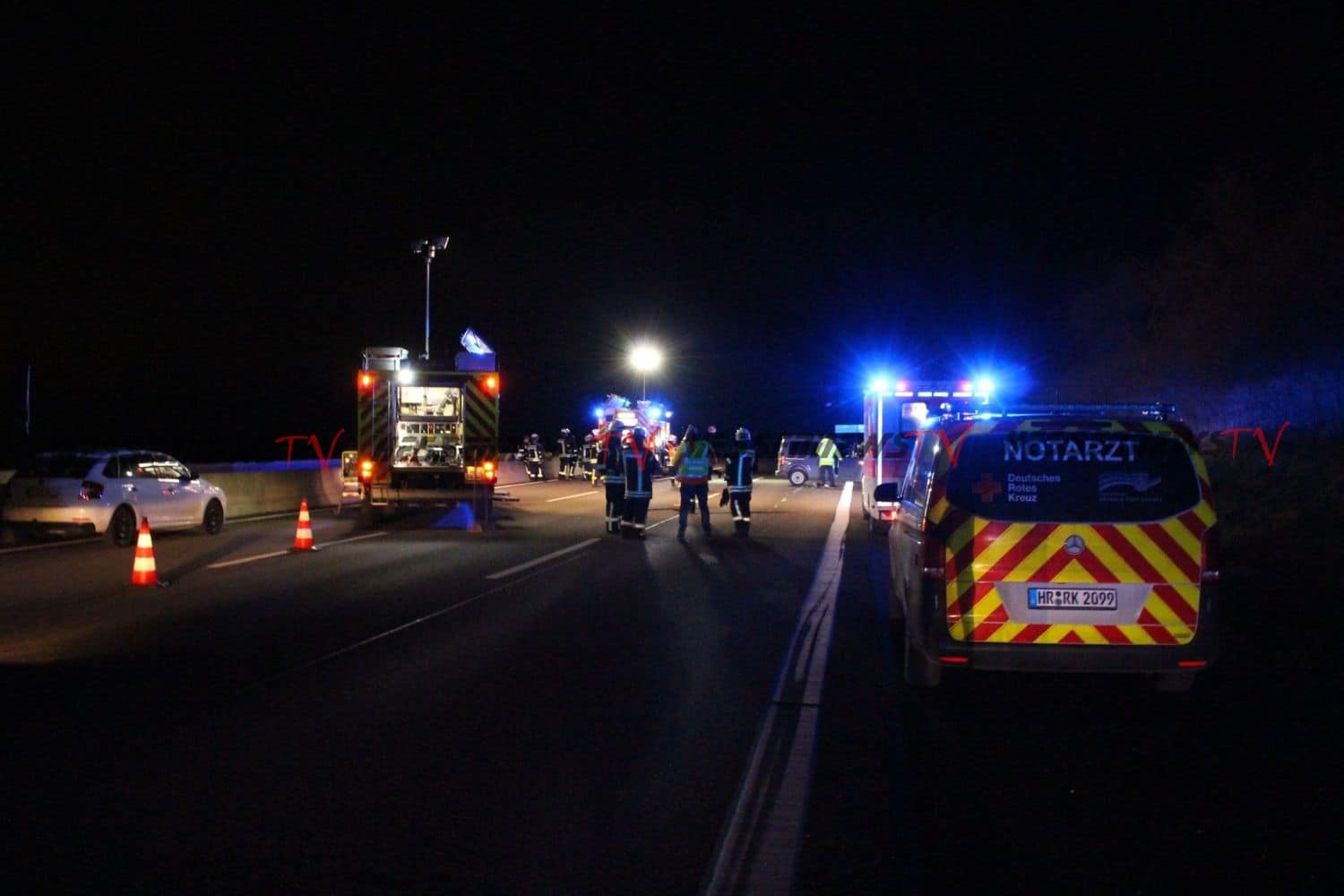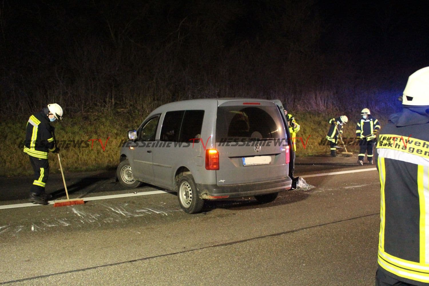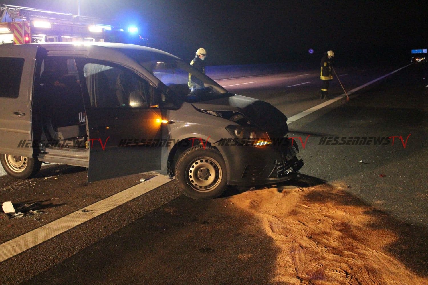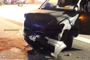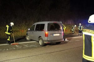Guxhagen – Zu einem Auffahrunfall kam es am Samstag gegen 21.30 Uhr auf der A7 zwischen Guxhagen und Kassel. Als die alarmierte Feuerwehr Guxhagen am Unfallort in Höhe KM 316 eintraf, war bereits ein RTW aus Fulda vor Ort und kümmerte sich um den verletzten Fahrer des aufgefahrenen Caddy. Die Familie aus dem anderen PKW wurde nicht verletzt. Die Feuerwehr sicherte die Unfallstelle ab und nahm auslaufende Betriebsstoffe auf. Die Autobahn wurde kurzfristig in Fahrtrichtung Nord voll gesperrt. Beide Fahrzeuge mussten abgeschleppt werden.