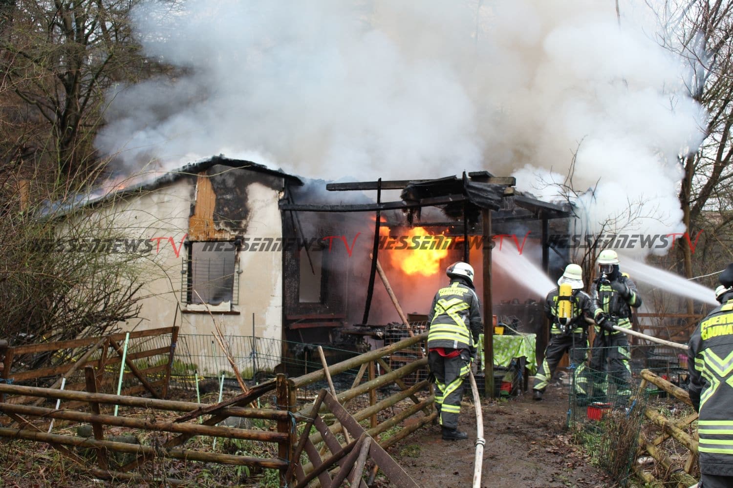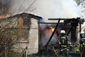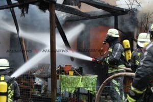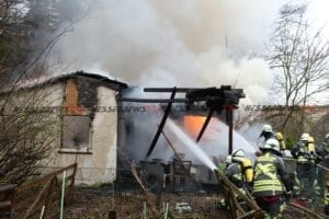 Baunatal – Für eine starke Rauchentwicklung sorgte am Freitagnachmittag ein Gartenhüttenbrand in Baunatal-Guntershausen. Gegen 15 Uhr wurde die Feuerwehr Baunatal alarmiert. Bei Eintreffen der Einsatzkräfte stand in einem Waldgebiet die Hütte im Vollbrand. Zuerst wurde das Feuer mit Wasser aus den Löschfahrzeugen bekämpft. Parallel wurde eine Wasserversorgung über die nah gelegene Fulda hergestellt. Im Einsatz war die Feuerwehr Guntershausen, Altenbauna, Rengershausen, Kirchbauna und Hertingshausen.