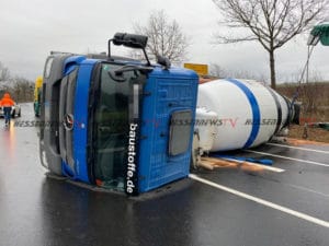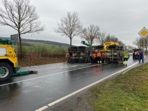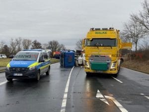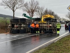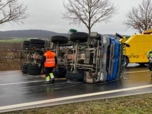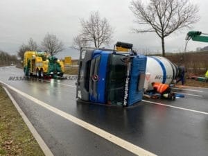 Wabern – Aus bisher noch nicht geklärter Ursache, ist am Freitagvormittag ein Betonmischer auf der B253 in Höhe Wabern umgekippt. Der 29-Jährige Fahrer befuhr die Bundesstraße von Gensungen kommend in Fahrtrichtung Homberg (Efze). In Höhe des Abzweigs nach Unshausen kippte das Fahrzeug mit 32 Tonnen Beton um. Der Fahrer blieb unverletzt. Der Sachschaden wird auf 25.000 Euro geschätzt. Für die Bergung war die Bundesstraße voll gesperrt.