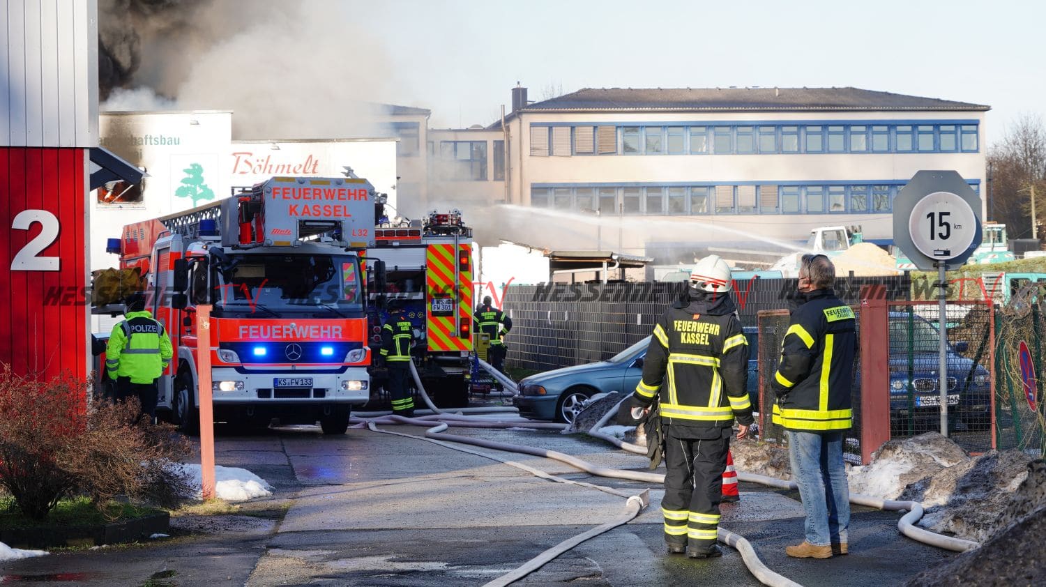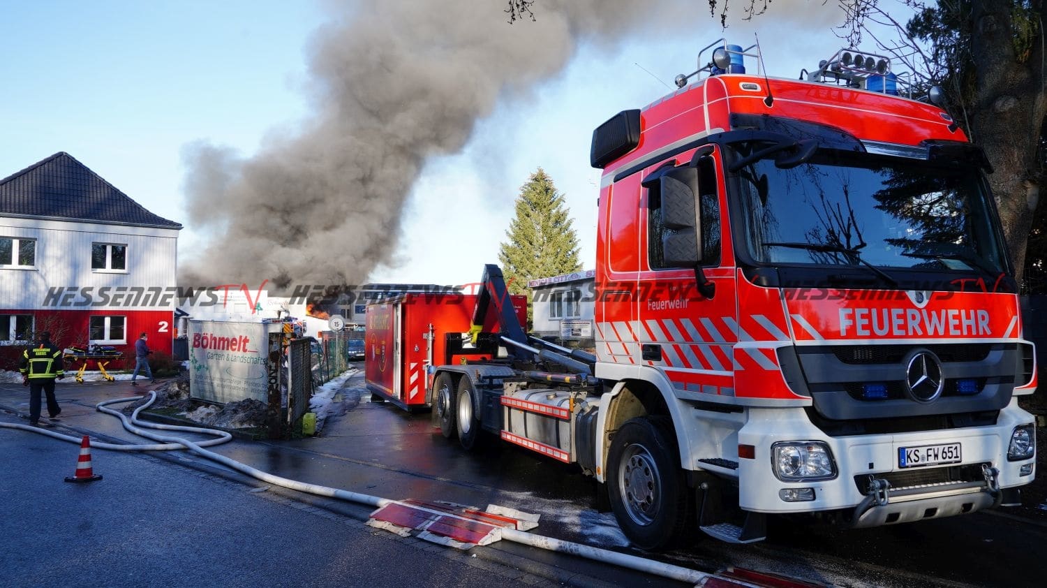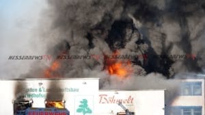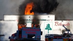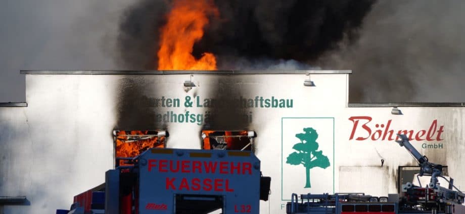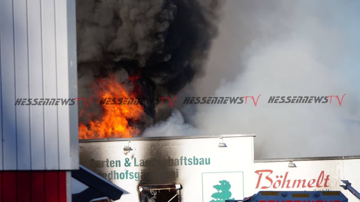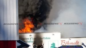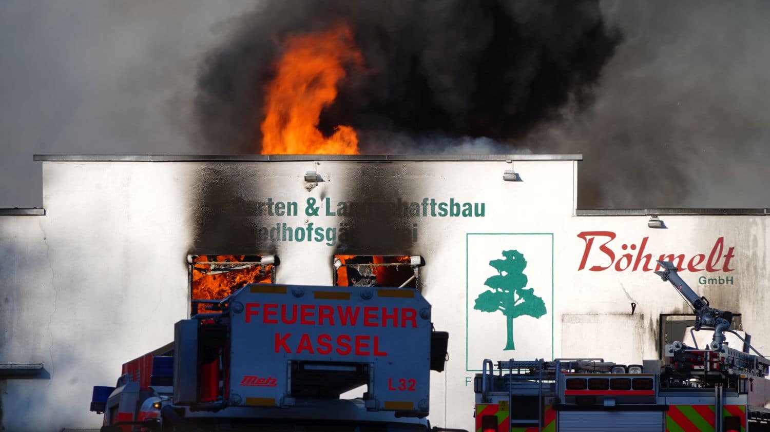 Kassel – Am frühen Sonntagmorgen gegen 07.45 Uhr wurde von Anwohnern aus der Angersbachstraße in Kassel eine starke Rauchentwicklung gemeldet. Beim Eintreffen der ersten Einsatzkräfte wurde festgestellt, dass das Gebäude eines Garten- und Landschaftsbaubetrieb im Vollbrand stand. Auf Grund der enormen Brandausdehnung mussten zwei angrenzende Wohnhäuser geräumt werden. Die insgesamt 30 Bewohner befinden sich aktuell in Betreuung. Bis zum aktuellen Zeitpunkt gibt es glücklicherweise noch keine Verletzten. Insgesamt sind derzeit 100 Einsatzkräfte der Feuerwehr und ca. 30 Polizeibeamte im Einsatz. Was genau den Band ausgelöst hat ist ebenso wie die Höhe des Sachschadens derzeit noch völlig unklar. Sobald wir neue Informationen haben berichten wir nach. Anwohner aus der näheren Umgebung werden gebeten Fenster und Türen geschlossen zu halten. Die Rauchsäule war kilometerweit sichtbar.