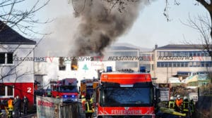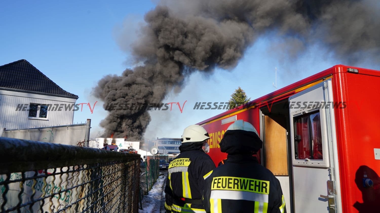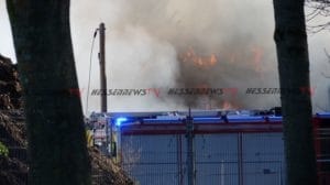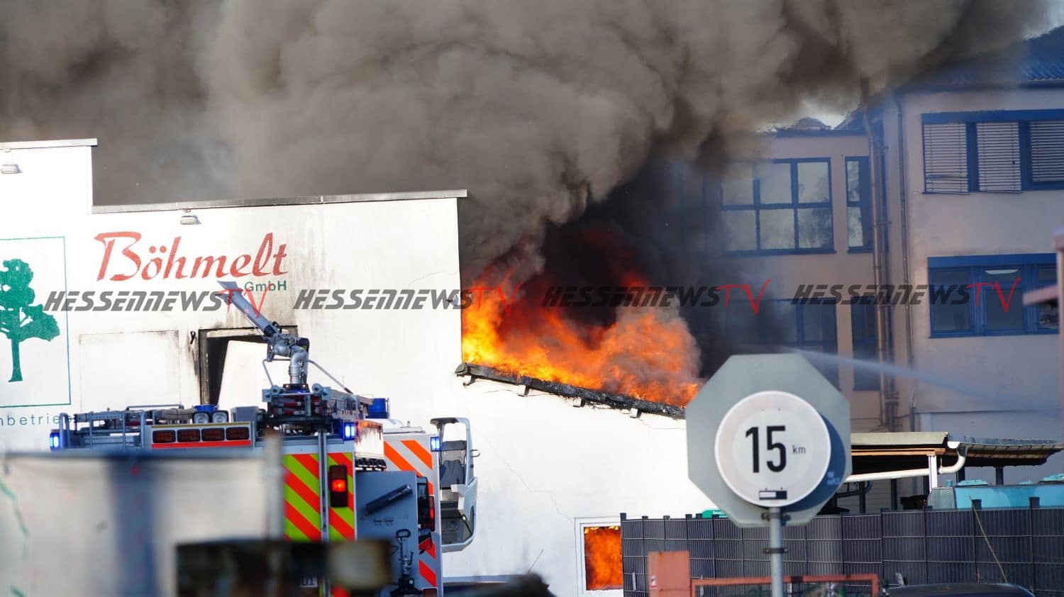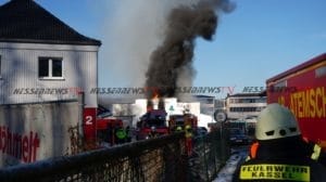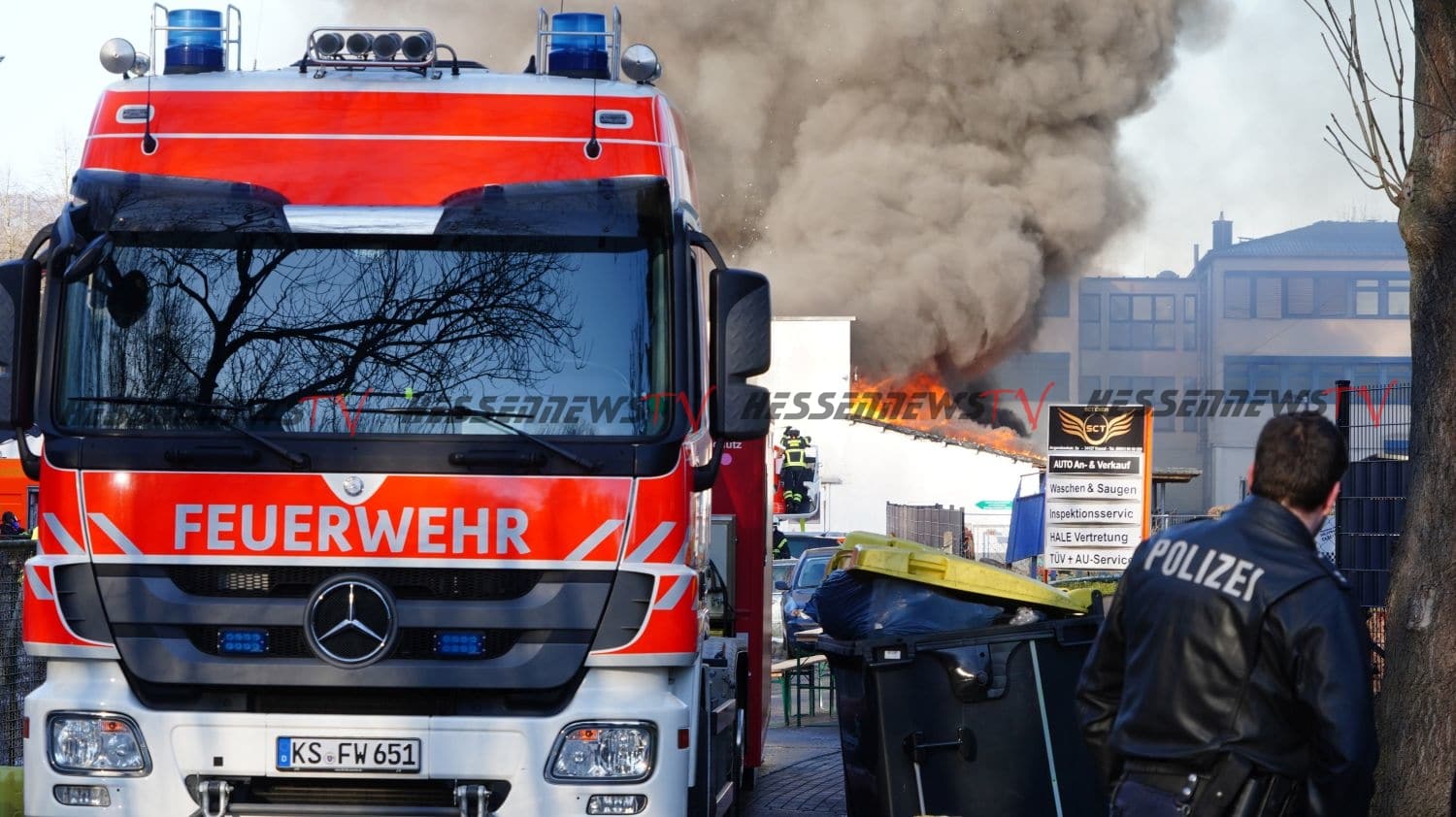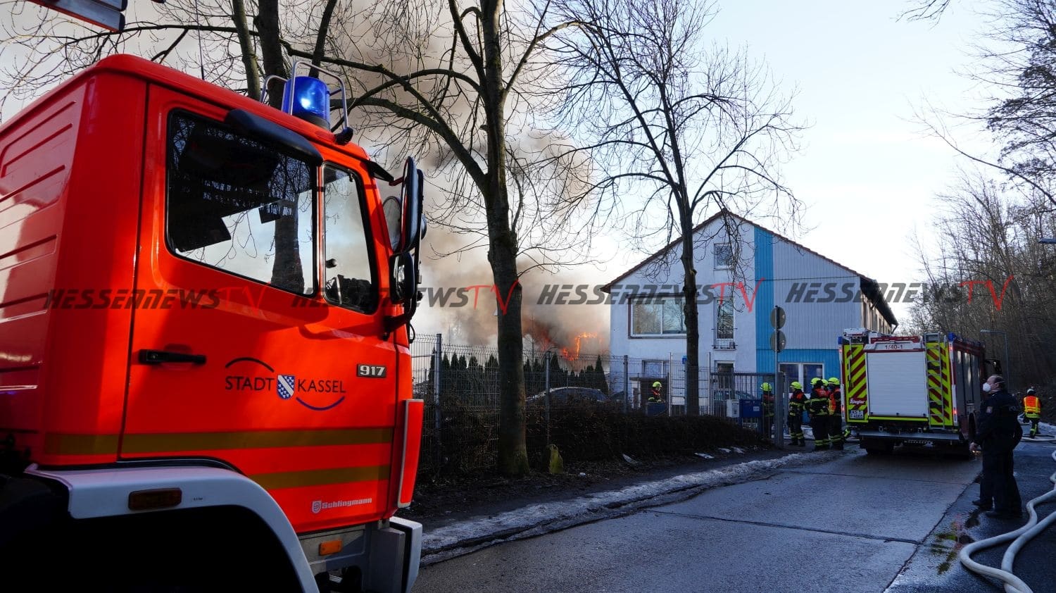 Kassel – Am frühen Sonntagmorgen gegen 07.45 Uhr wurde von Anwohnern aus der Angersbachstraße in Kassel eine starke Rauchentwicklung gemeldet. Beim Eintreffen der ersten Einsatzkräfte wurde festgestellt, dass das Gebäude eines Garten- und Landschaftsbaubetrieb im Vollbrand stand. Auf Grund der enormen Brandausdehnung mussten zwei angrenzende Wohnhäuser geräumt werden. Die insgesamt 30 Bewohner befinden sich aktuell in Betreuung. Bis zum aktuellen Zeitpunkt gibt es glücklicherweise noch keine Verletzten. Insgesamt sind derzeit 100 Einsatzkräfte der Feuerwehr und ca. 30 Polizeibeamte im Einsatz. Was genau den Band ausgelöst hat ist ebenso wie die Höhe des Sachschadens derzeit noch völlig unklar. Sobald wir neue Informationen haben berichten wir nach. Anwohner aus der näheren Umgebung werden gebeten Fenster und Türen geschlossen zu halten. Die Rauchsäule war kilometerweit sichtbar.