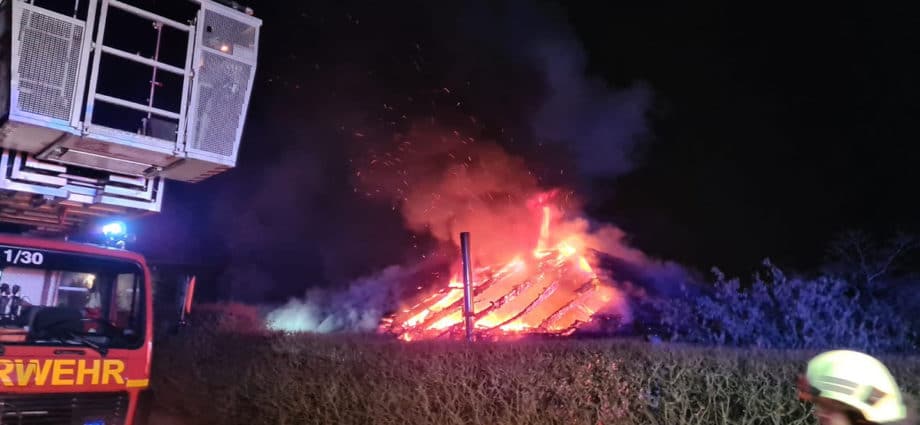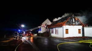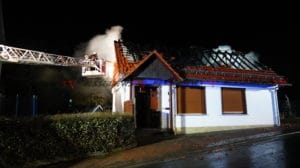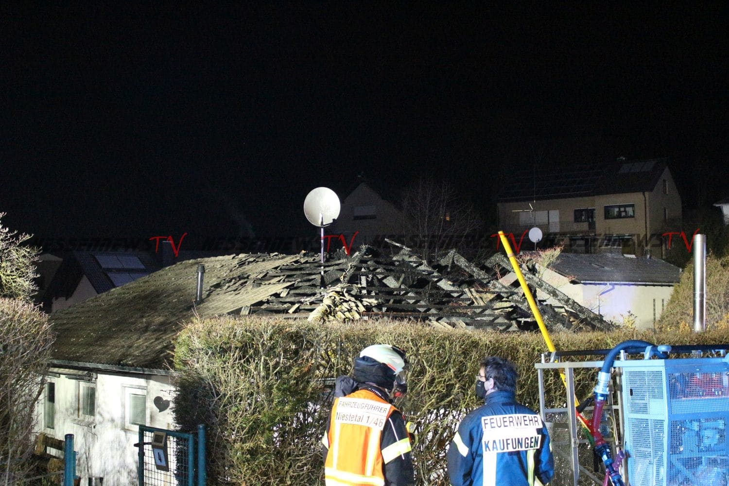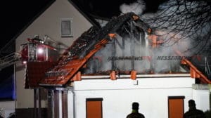 Niestetal/Vokerode – In der Nacht auf Freitag mussten die Feuerwehren in Nordhessen gleich zwei Dachstuhlbrände fast gleichzeitig bekämpfen.Gegen 02:00 Uhr meldeten Passanten den Brand eines Dachstuhls im Niestetaler Ortsteil Heiligenrode. Als die Einsatzkräfte der Feuerwehr am Brandort im Ginsterweg eintrafen, stand das Dach des Einfamilienhauses bereits im Vollbrand. Die beiden 40- bzw. 26-jährigen Bewohner hatten das Haus unverletzt verlassen können.Mittels Einsatz von zwei Drehleitern aus Kaufungen und Kassel konnten die Einsatzkräfte der Feuerwehr den Brand schnell unter Kontrolle bringen und so ein Übergreifen auf andere Gebäudeteile verhindern. Das Haus ist derzeit unbewohnbar. Die beiden Bewohner werden durch die Gemeinde Niestetal untergebracht. Nach ersten Erkenntnissen ist der Brand vermutlich im Bereich eines Kaminofens ausgebrochen. Der Sachschaden wird auf 50.000 Euro geschätzt.
