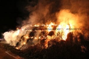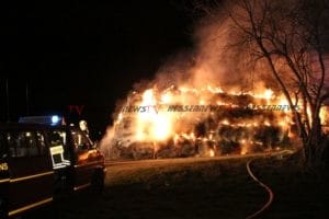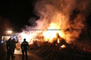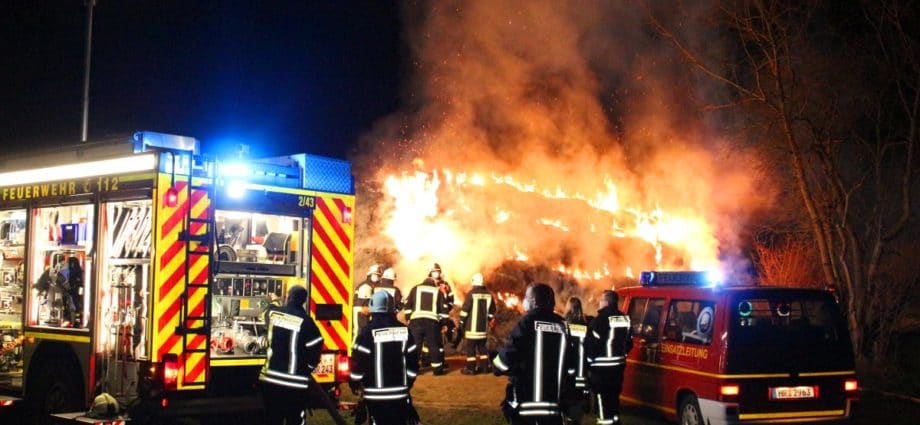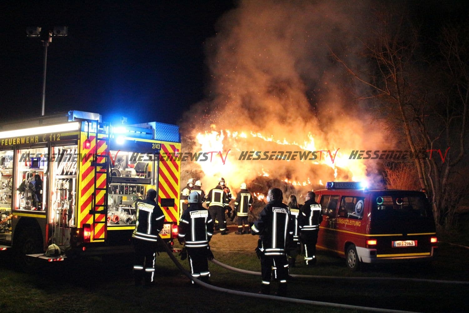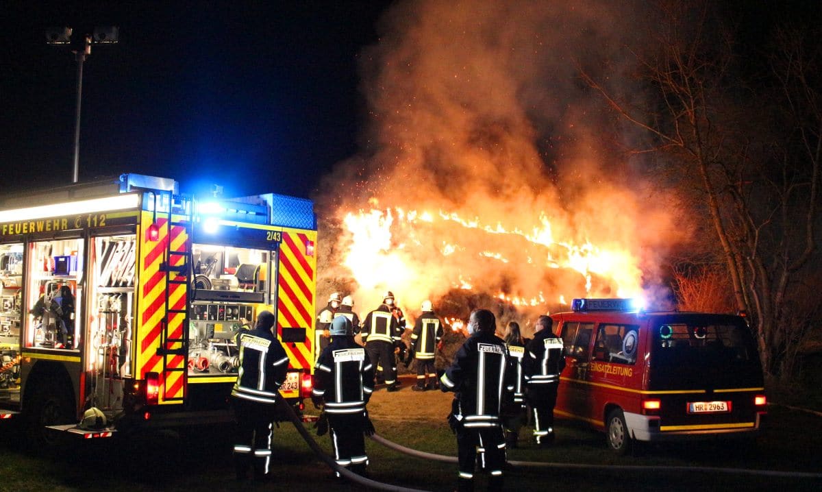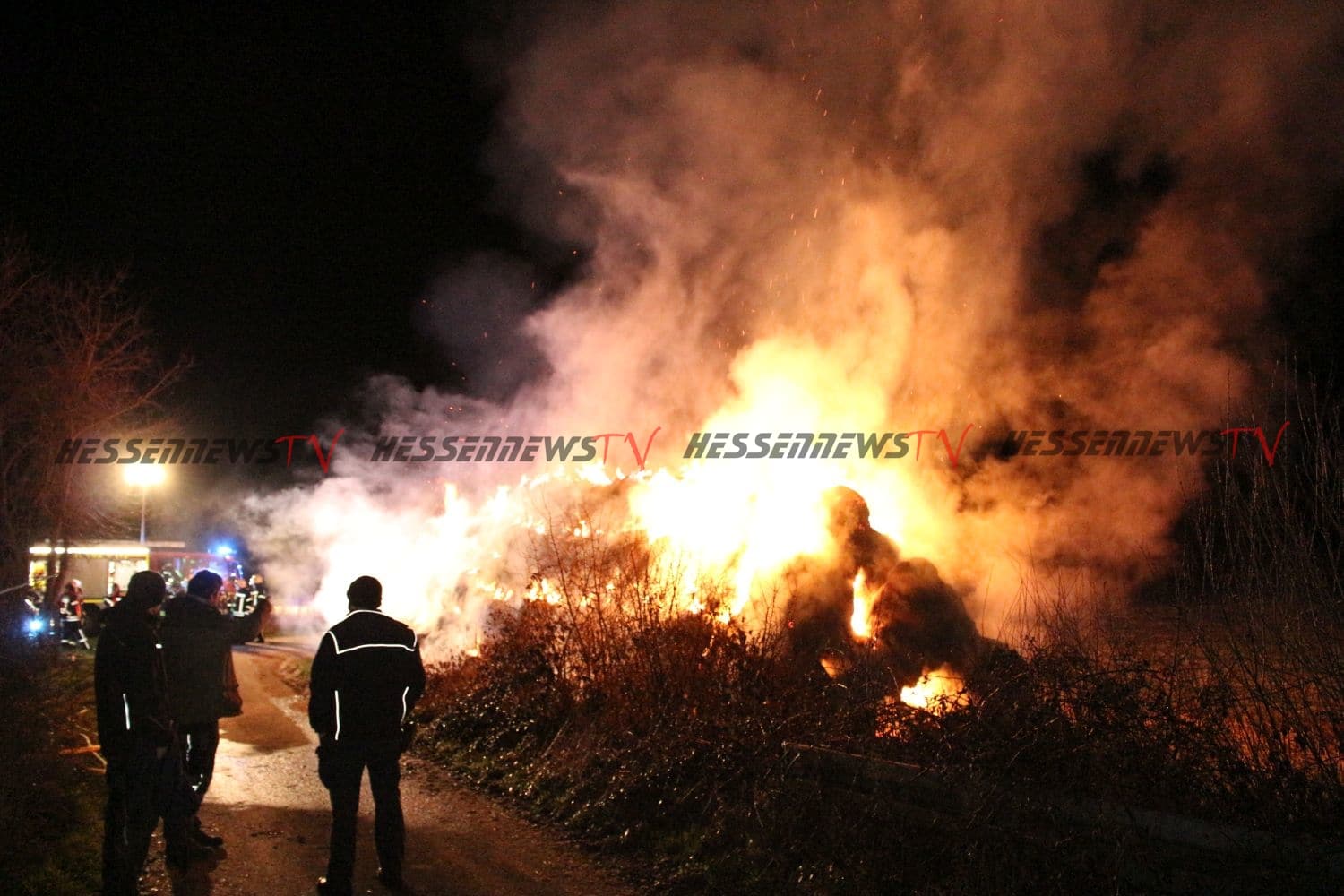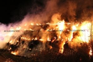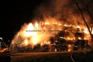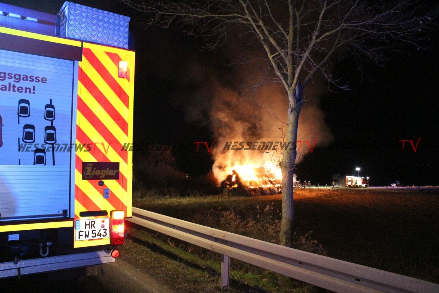 Guxhagen − Am frühen Samstag morgen gegen 4 Uhr, wurde die Feuerwehr Guxhagen und die Feuerwehr Edermünde−Grifte zu einem Brand im Freien Alarmiert. Beim eintreffen der ersten Einsatzkräfte standen rund. 200 Rundballen auf einem Feld an der L3221 in Brand. Die Feuerwehr hat die ersten Löschmaßnahmen eingeleitet und alarmierte zusätzlich das THW mit entsprechendem schweren Gerät zur Einsatzstelle, um die Rundballen auseinander zu ziehen. Die Feuerwehr war mit rund 40 Einsatzkräften vor Ort.