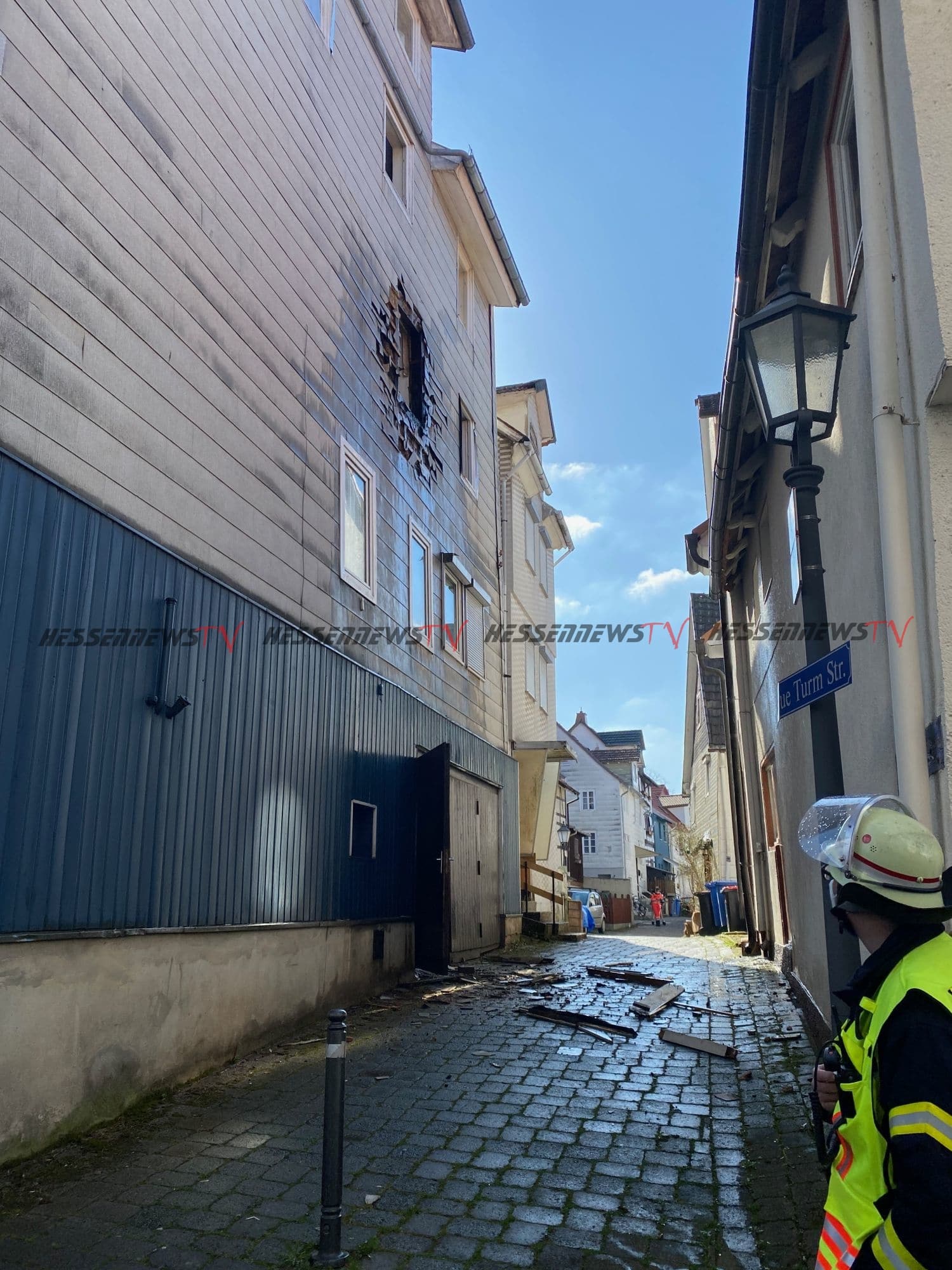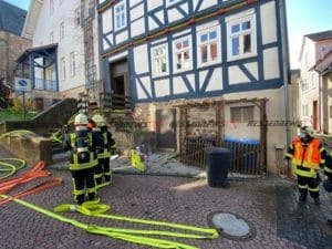 Bad Wildungen – Aufmerksamen Nachbarn und das schnelle Eingreifen der Bad Wildunger Feuerwehr ist es wohl zu verdanken, dass sich am Karfreitag-Nachmittag ein Feuer in der Bad Wildunger Altstadt nicht weiter ausbreiten konnte. Aus bislang ungeklärten Umständen geriet die Fassade eines Gebäudes im Bereich Graue Turm Straße / Ecke Ranzenstraße in Brand. Bei Ankunft der ersten Einsatzkräfte waren Rauch und Flammen im Bereich eines Fensters im Obergeschoss sichtbar. Durch das zügige Vorgehen der Brandschützer konnte schnell festgestellt werden, dass sich niemand mehr im Gebäude befand. Auch der Brand war schnell lokalisiert und gelöscht. Mit einer Wärmebildkamera wurden die Wände und Zwischenräume nach weiteren Glutnestern kontrolliert. Da bei der Alarmierung zunächst nicht klar war, ob sich noch Personen im Gebäude befanden, wurden neben der Feuerwehr auch zwei Rettungswagen sowie ein Notarzt zur Einsatzstelle geschickt. Schnell stellte sich aber heraus, dass der letzte Bewohner erst kürzlich ausgezogen war. Somit gab es glücklicherweise keine Verletzten. Ersten Erkenntnissen zur Folge, brannte es im Zwischenraum einer Fassade des inzwischen leerstehenden Gebäudes. Auch angrenzende Wohnräume wurden durch Feuer und Rauch erheblich Beschädigt. Die Brandursache sowie die Höhe des Sachschadens konnte vor Ort nicht ermittelt werden und bleibt Sache weiterer Ermittlungen. Im Einsatz waren die Feuerwehr Bad Wildungen, zwei Rettungswagen, ein Notarzt sowie die Polizei Bad Wildungen. (mpu)