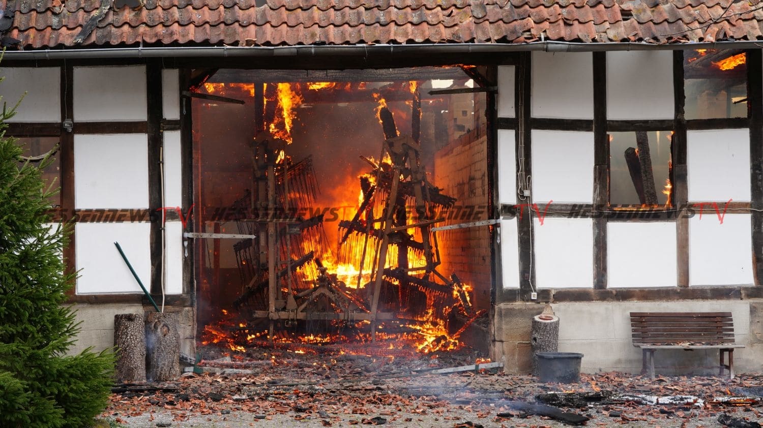 Naumburg – Im Naumburger Ortsteil Heimarshausen kam es am Mittwoch gegen 11.45 Uhr zu einem Scheunenbrand. Beim Eintreffen der Feuerwehr stand die Scheune in Vollbrand. Zwei Wohnhäuser die an der Scheune angrenzten, konnten von den 150 Einsatzkräften erfolgreich geschützt werden. Verletzt wurde niemand. Auch die Landwirte unterstützten die Feuerwehr, damit ausreichend Löschwasser vorhanden war. Zudem kamen zwei Drehleitern zum Einsatz. Die Brandursache ist derzeit noch unklar.