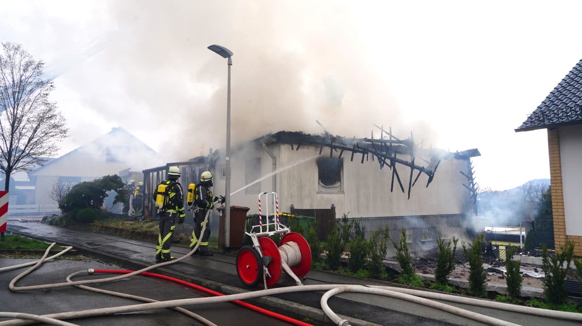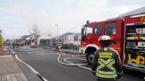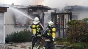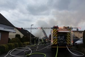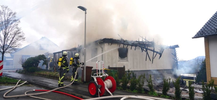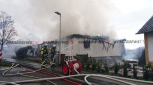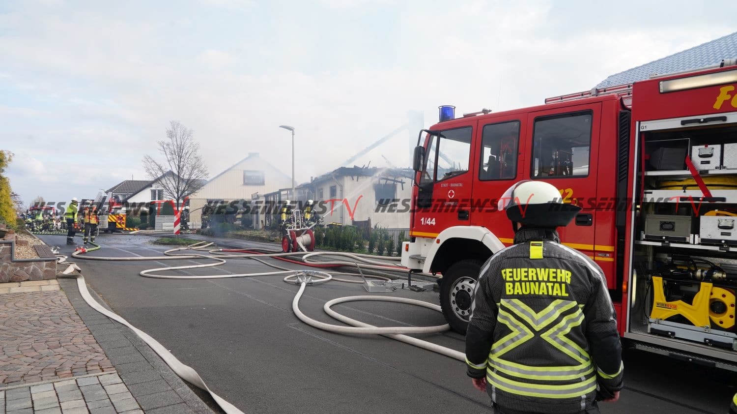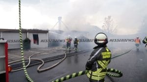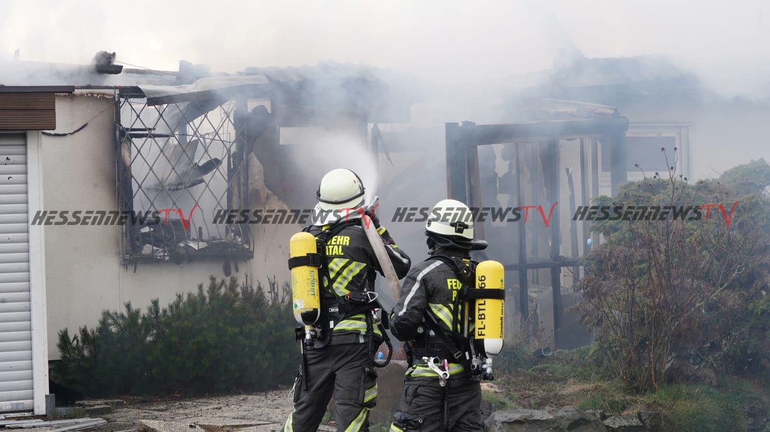 Baunatal – Gegen 16.15 Uhr wurde die Feuerwehr Baunatal zu einem Brand im Gebäude alarmiert. Zunächst ging man davon aus, dass sich noch Menschen im Gebäude befinden. Dies bewahrheitete sich zum Glück jedoch nicht. Beim Eintreffen der ersten Einsatzkräfte stand das Gebäude bereits im Vollbrand. Durch die enorme Brandentwicklung war nur noch ein Außenangriff durch die Feuerwehr möglich, da bereits Teile des Gebäudes eingestürzt waren. Ein Wohnwagen der sich auf dem Nachbargrundstück befand, wurde von der Feuerwehr in einen sicheren Bereich gebracht. Auch die angrenzenden Gebäude konnten von der Feuerwehr gesichert werden. Nach letzten Informationen von der Einsatzstelle wurde bei dem Brand niemand verletzt. Was genau den Brand ausgelöst hat ist derzeit noch unbekannt, die Polizei hat die Ermittlungen aufgenommen. Die Löscharbeiten werden nach Angaben der Feuerwehr noch bis in den späten Abend andauern.
