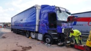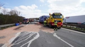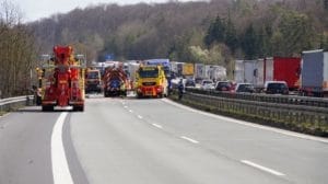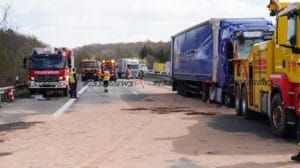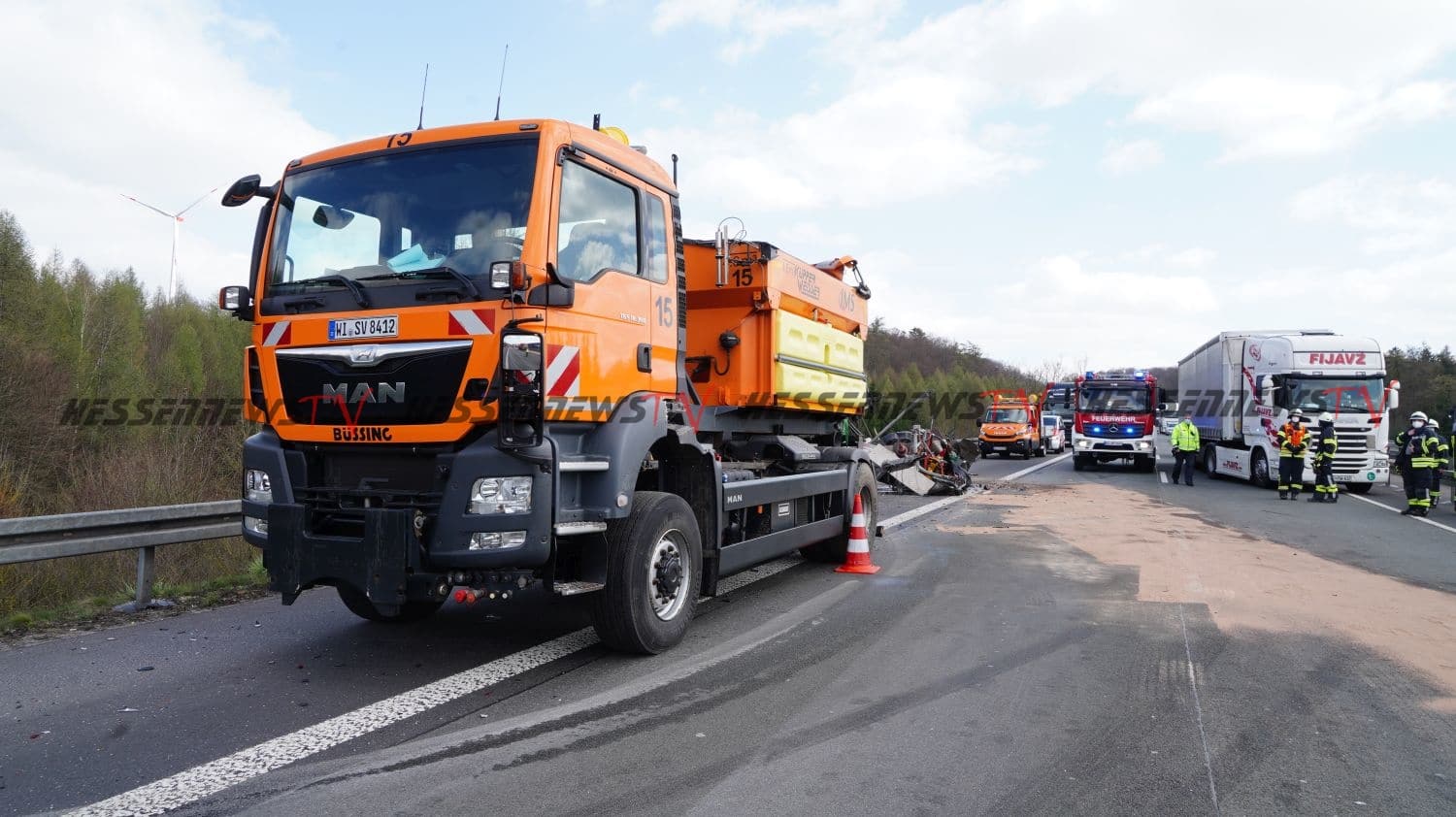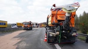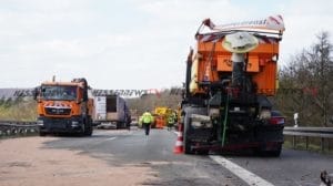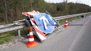 Breuna – Auf der A44 zwischen Rastanlage Bühleck und der Abfahrt Breuna in Fahrtrichtung Dortmund kam es am Donnerstag gegen 13 Uhr zu einem Verkehrsunfall mit einem LKW. Aufgrund von Asphalt-Arbeiten wurde auf der Autobahn eine Tagesbaustelle eingerichtet. Aus bisher noch nicht geklärter Ursache krachte ein LKW in ein Baustellenfahrzeug mit Absperranhänger. Danach krachte der Sattelzug in die Mittelschutzplanke. Da zu diesem Zeitpunkt kein Arbeiter im Bereich der Unfallstelle war, gab es zum Glück keine Verletzten. Auch der Verursacher wurde nicht verletzt. Rund 400 Liter Diesel liefen aus und wurden von der alarmierten Feuerwehr Breuna gebunden und aufgenommen. Die Autobahn musste für die Aufräumarbeiten mehrere Stunden voll gesperrt werden.