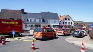 Melsungen – Am Montag gegen 12.40 Uhr kam es zu einem Brand in einem Mehrfamilienhaus in Melsungen. Als die ersten Einsatzkräfte in der Straße „Zum Pfieffrain“ eintrafen, stand bereits ein Zimmer in Vollbrand und breitete sich auf das Dachgeschoss aus. Die Bewohner konnten das Haus noch rechtzeitig verlassen. Die Feuerwehr hatte den Brand nach rund 30 Minuten unter Kontrolle. Das Haus ist unbewohnbar. Eine Mutter mit ihren zwei Kinder wurden in ein Krankenhaus eingeliefert. Die Brandursache ist unklar, die Polizei hat ihre Ermittlungen aufgenommen.