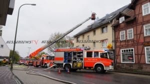 Kassel – In der Wolfhager Straße, Ecke Hainbuchenstraße, im Kasseler Stadtteil Harleshausen kam es gegen 13.30 Uhr zu einem Brand. Die Feuerwehr wurde zu einem Küchenbrand alarmiert. Das Feuer breitete sich allerding schnell auf den gesamten Dachstuhl des Wohn- und Geschäftshauses aus. Beim Eintreffen der Feuerwehr waren bereits alle Bewohner in Sicherheit, verletzt wurde niemand. Um das Feuer unter Kontrolle zu bekommen, sind zwei Drehleitern im Einsatz. Aktuell ist die Berufsfeuerwehr immer noch im Einsatz. Die Wolfhager Straße ist in Höhe der Hausnummer 375 voll gesperrt. Anwohner werden aufgrund der starken Rauchentwicklung zudem gebeten, Fenster und Türen geschlossen zu halten.